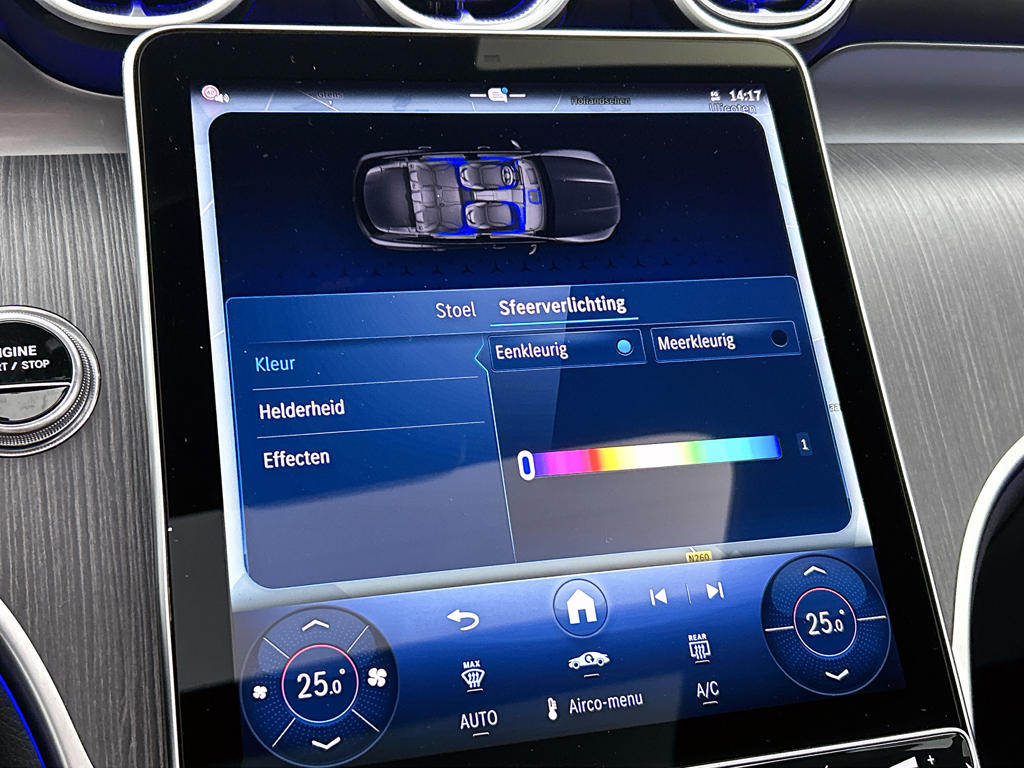 Deze Mercedes-Benz is voorzien van verschillende intelligente veiligheidsvoorzieningen. Ze kijken tijdens het rijden als het ware met je mee, ze signaleren potentieel gevaarlijke situaties en in een aantal gevallen kunnen ze ook ingrijpen. De camera van de verkeersborddetectie herkent verschillende soorten verkeersborden en toont deze op het dashboard. Bij afslaan en inhalen waarschuwt de actieve dodehoekdetectie meteen als er gevaar is vanwege voertuigen buiten je zichtveld. De lane assist dirigeert je weer naar het midden van je rijstrook als je buiten de lijnen dreigt te gaan. Dankzij veiligheidsvoorzieningen als actief stadsremsysteem en bandenspanningcontrolesysteem, ben je steeds veilig onderweg.
