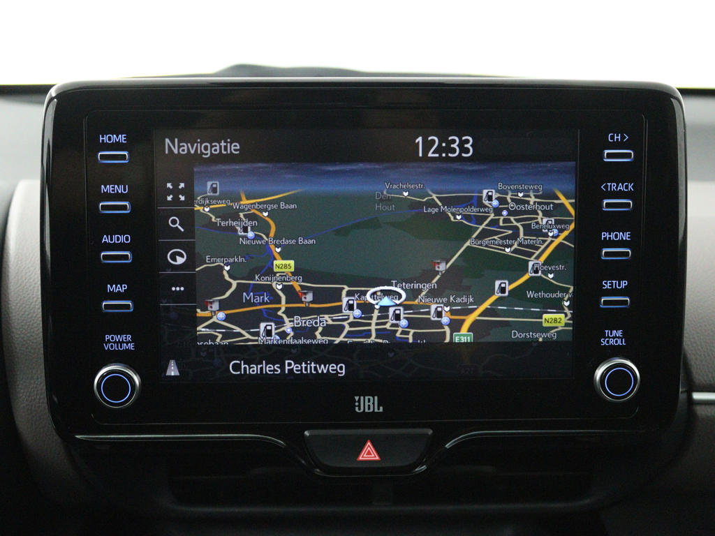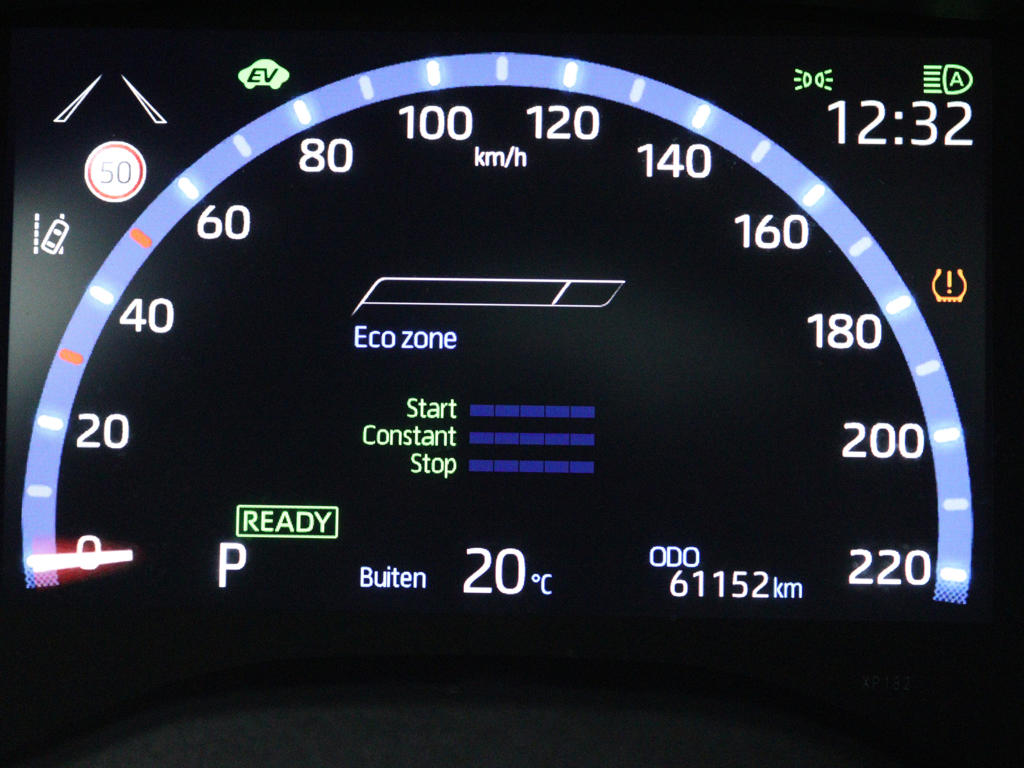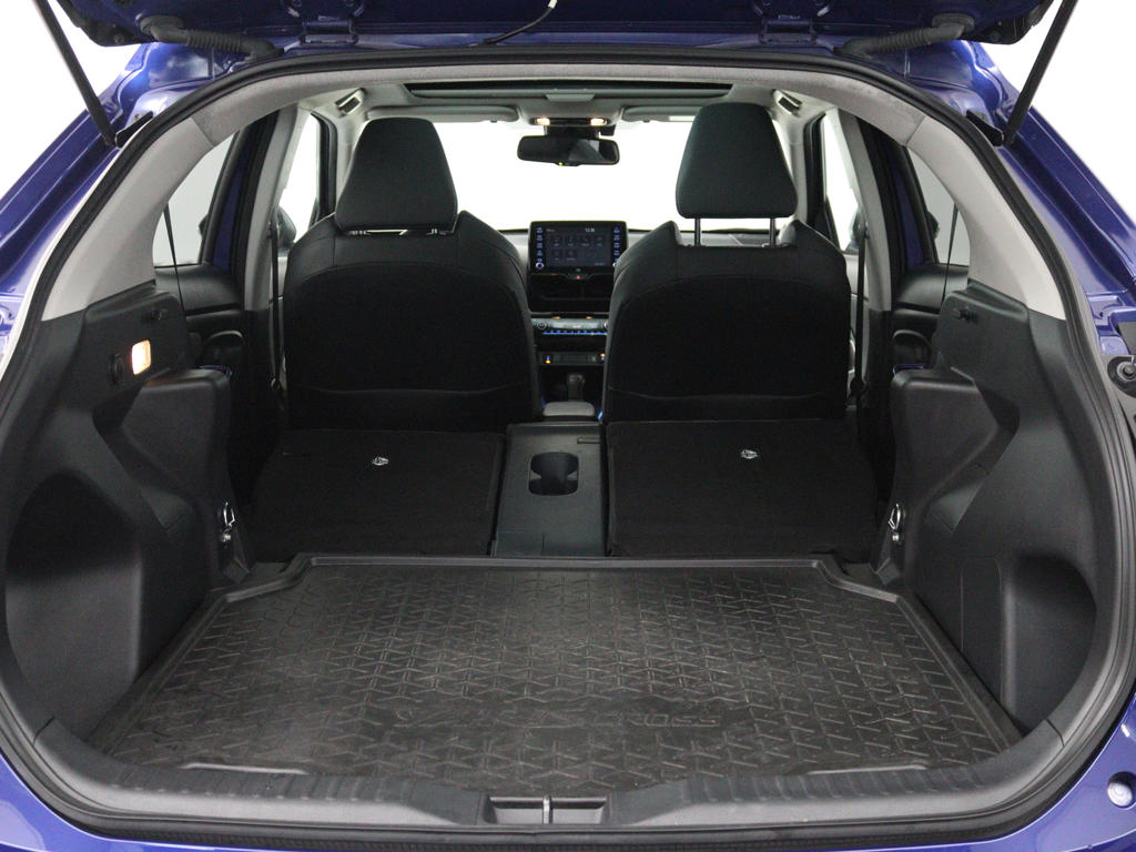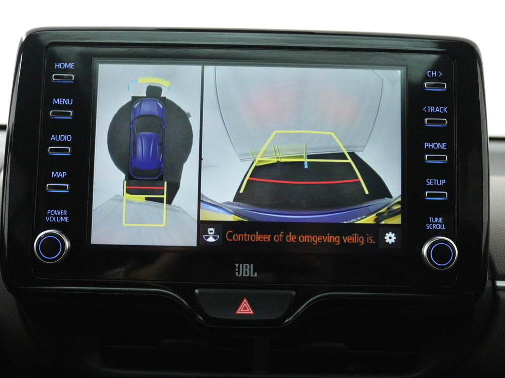 Zoals je mag verwachten van deze Toyota Yaris Cross is hij uitgerust met een reeks aan actieve veiligheidssystemen. Hou zicht op de weg en check tegelijk de functies op het dashboard: dat kan, dankzij de head-up display. In het instrumentarium zie je tijdens de rit ook de belangrijkste verkeersborden aangegeven, die de auto automatisch voor je leest. Het Lane-keeping systeem zorgt dat je mooi binnen de lijntjes blijft. Ongemerkt buiten de rijstrook komen is er niet meer bij. De auto is ook uitgerust met dodehoekdetectie, forward collision warning system, hill hold functie, brake assist en bandenspanningcontrolesysteem.