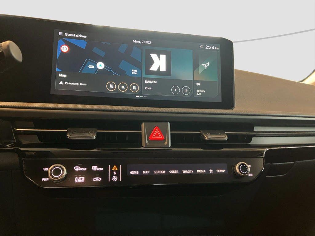 Wat ook opvalt, is de strakke en overzichtelijke informatie die het digitale dashboard levert. Afstand schatten bij het achteruitrijden? Niet nodig. Je weet het precies, dankzij de achteruitrijcamera. Adaptive cruise control houdt de ingestelde snelheid vast en houdt afstand tot het voertuig voor je. In de file rijden vreet concentratie. Daarom komt de file assistent te hulp om veilig afstand te houden en automatisch te stoppen als je voorligger stilstaat. Spraakbediening herkent jouw stem en voert opdrachten uit terwijl jij beide handen aan het stuur houdt. Deze Kia is voorzien van connected drive services, full map navigatiesysteem, electronic climate control, draadloos opladen, regensensor en keyless entry.