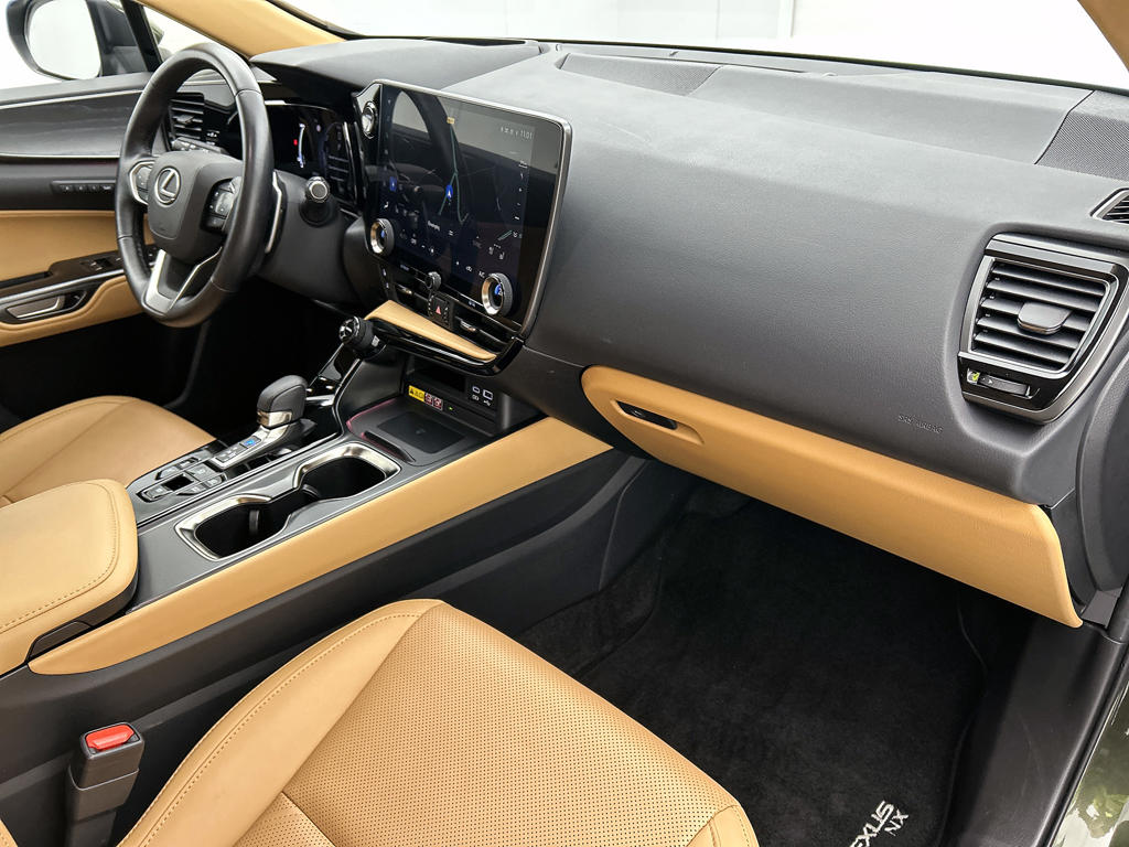 Omdat rijden een plezier mag zijn, staat deze Lexus NX enthousiast te glimmen in de showroom. Technisch in topconditie, strak in de lak... echt een droomauto! Met de pittige benzinemotor haal jij veel kilometers uit een volle tank. Het lederen interieur zorgt voor een klasse uitstraling. De verwarmbare voorstoelen zijn een weldaad voor rug en schouders. Het panoramadak zorgt voor maximale lichtinval en kan worden geopend voor extra ventilatie. De elektrische achterklep opent met een druk op de knop, zodat jij gemakkelijk toegang heeft tot de bagageruimte. Laat ze achterin ook maar genieten: deze Lexus NX is uitgevoerd met een verwarmde achterbank. De uitmonstering van deze auto wordt gecompleteerd door onder meer 20 inch lichtmetalen velgen, Full LED koplampen, donker getint glas achter, in delen neerklapbare achterbank, LED-achterlichten en verstelbare lendensteunen.