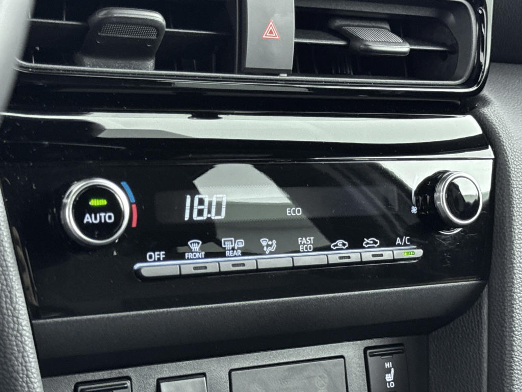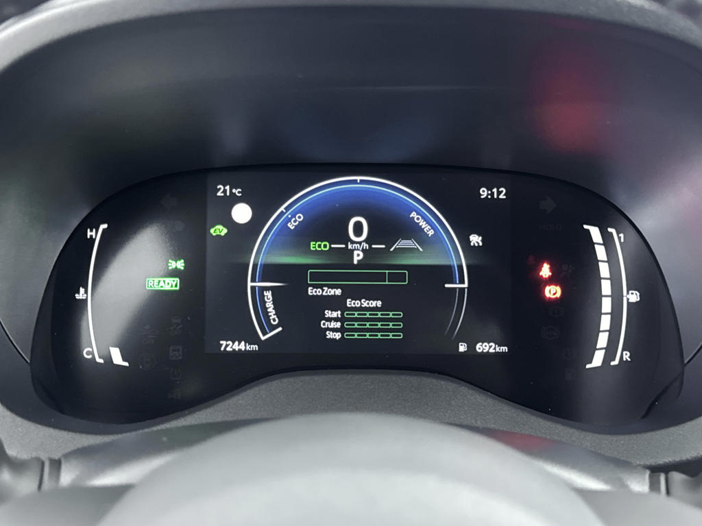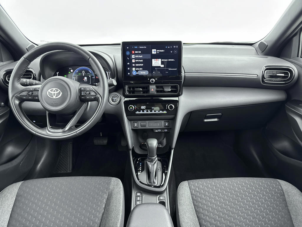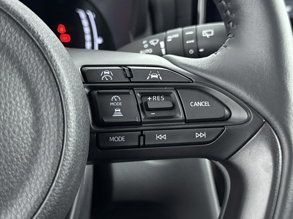 Het digitale dashboard zorgt voor een super functionele display van reisinformatie. 'Boem is ho'? Niet met deze achteruitrijcamera. U ziet achter net zo goed als voor en krijgt een duidelijk geluidssignaal! Met adaptive cruise control houdt de auto zelfstandig afstand tot jouw voorligger. Een veiligheidsverhogende optie waarmee je comfortabel onderweg bent. Ingericht op Connected Services, voor een nog veiligere en comfortabelere rit. In deze Yaris Cross vind jij niet alleen schakelaars op het stuur om het audio-installatiesysteem met DAB-ontvangst te bedienen, maar er is ook spraakbediening. De uitrusting van deze auto is met automatische airconditioning, regensensor, keyless entry, buitentemperatuurmeter, automatisch dimmende binnenspiegel en lederen stuur behoorlijk compleet.