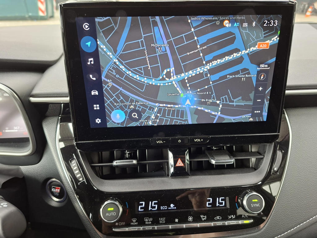 Soepel inparkeren gaat gemakkelijker dan je verwacht dankzij de achteruitrijcamera. Adaptive cruise control houdt de ingestelde snelheid vast en houdt automatisch afstand tot jouw voorligger. Deze Toyota Corolla Touring Sports is voorzien van remote services. Via je smartphone bedien je diverse functies ook op afstand en krijgt je informatie over de status van je auto. Kies de muziek waarvan jij houdt, dankzij de DAB-radio klinkt het altijd geweldig. Intussen bedien je het audio-installatiesysteem en het full map navigatiesysteem met de knoppen op het stuur of met je stem. Smartphones die zonder snoer kunnen opladen halen simpel een volle accu via de draadloze oplaadmogelijkheid voor telefoons. En deze auto heeft ook achteropkomend verkeer waarschuwing, automatische airconditioning, regensensor, sportstuurwiel, keyless entry en buitentemperatuurmeter als standaard uitrusting.