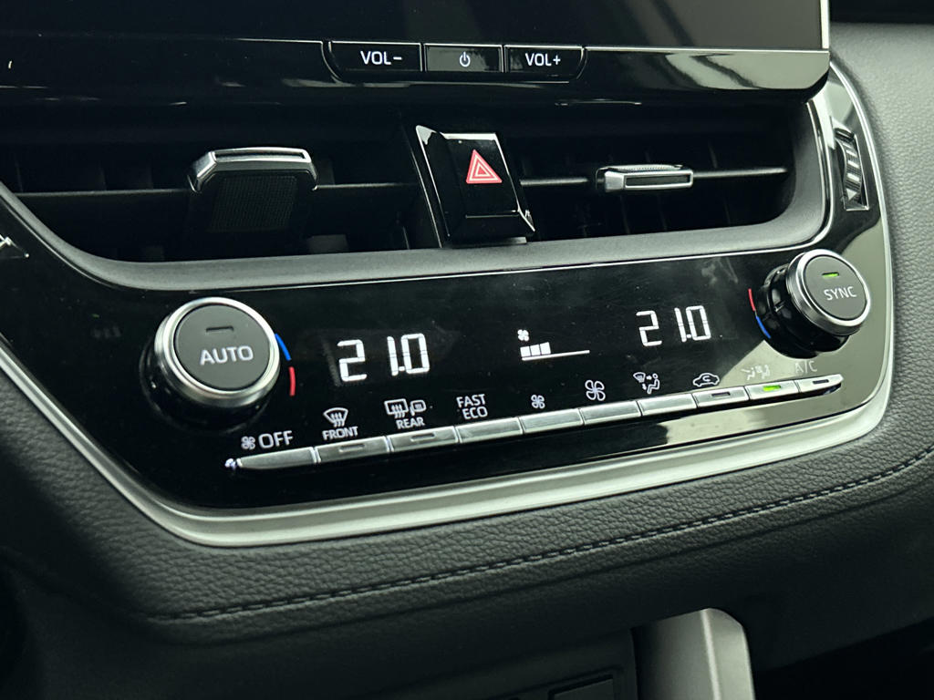 De Toyota Corolla Cross is jouw trouwe partner onderweg, want hij houdt continu voor jou de situatie op en om de weg in de gaten. Volautomatische veiligheidssystemen kunnen daarbij ingrijpen om je voor gevaarlijke situaties te behoeden. De camera van de verkeersborddetectie herkent verschillende soorten verkeersborden en toont deze op het dashboard. Het Lane-keeping systeem zorgt voor een automatisch constante positie binnen de rijstrook. Afdwalen is uitgesloten. Ook als jouw aandacht even verslapt, blijft de forward collision warning bij de wekker. Dreigt er een botsing met een voor- of tegenligger, dan waarschuwt het systeem direct. De auto is ook uitgerust met hill hold functie, brake assist, vermoeidheidsherkenning en bandenspanningcontrolesysteem.