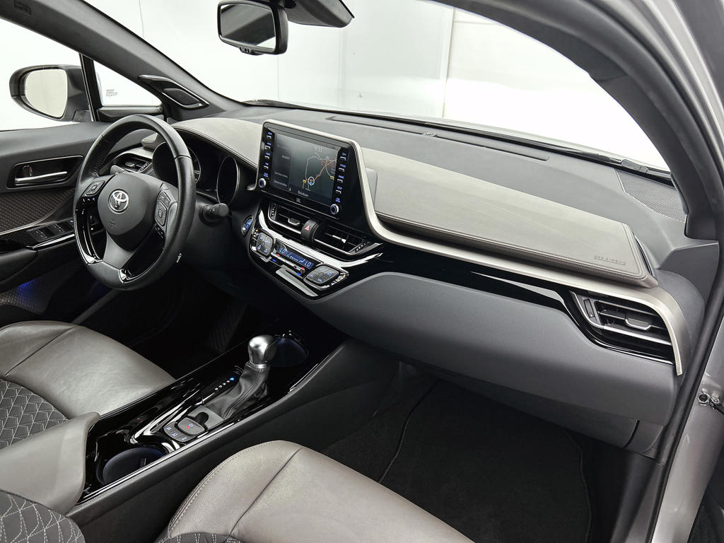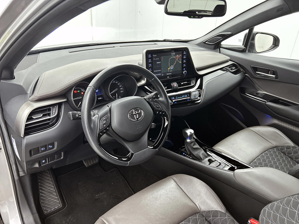 Soepel rijgedrag, een krachtige acceleratie en een laag brandstofverbruik, de hybride Toyota C-HR is een innovatieve auto. Deze Toyota C-HR is voorzien van een hybride motor en gebruikt dus zowel brandstof als elektriciteit. Dat betekent zuinige kilometers en toch maximale prestaties. Deze Toyota C-HR legt bestuurder én bijrijder compleet in de watten met de verwarmbare voorstoelen. Bij de uitrusting van deze Toyota horen onder meer 18 inch lichtmetalen velgen, LED koplampen, halflederen bekleding, donker getint glas achter, in delen neerklapbare achterbank en LED-achterlichten.
