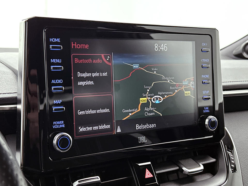 Het zal je verbazen hoe deze auto in staat is om voor jou de omgeving en het verkeer om je heen in de gaten te houden. Hou zicht op de weg en check tegelijk de functies op het dashboard: dat kan, dankzij de head-up display. In het instrumentarium kun je bovendien de verkeersborden zien die je onderweg tegenkomt. Zo helpt deze Toyota jou om veiliger te rijden. Het Lane-keeping systeem let constant op en waarschuwt of corrigeert als je onoplettend over de lijnen van de rijstrook gaat. Je bent mede dankzij dodehoekdetector detectiesysteem, forward collision warning system, brake assist, vermoeidheidsherkenning en bandenspanningcontrolesysteem steeds veilig onderweg.