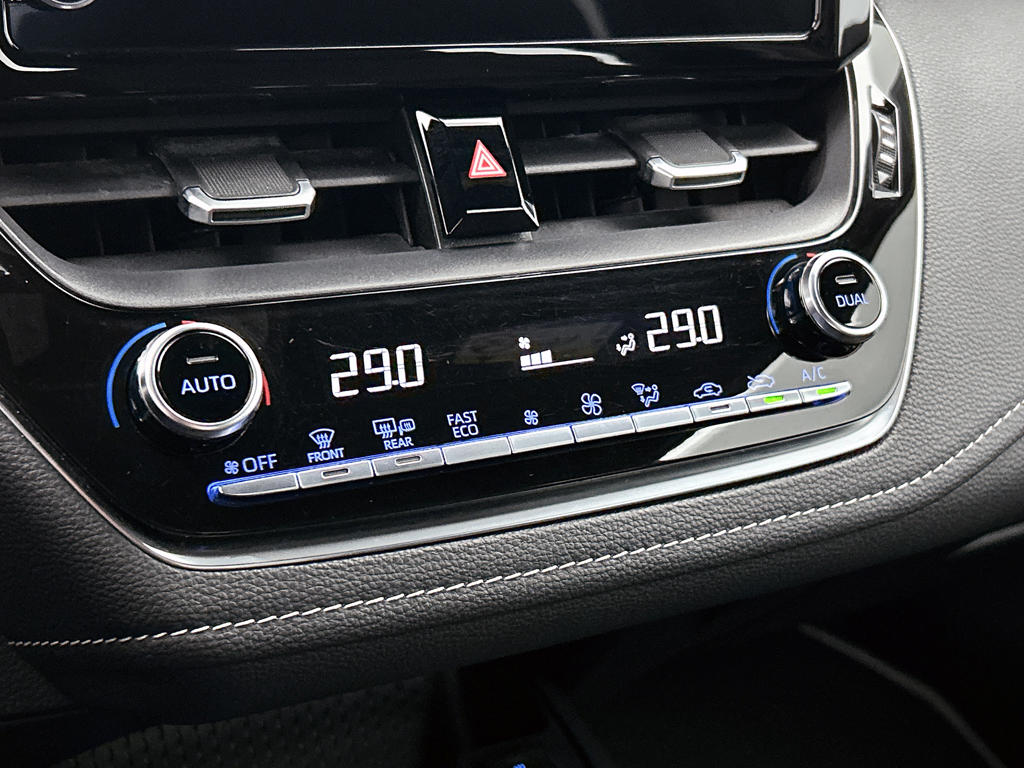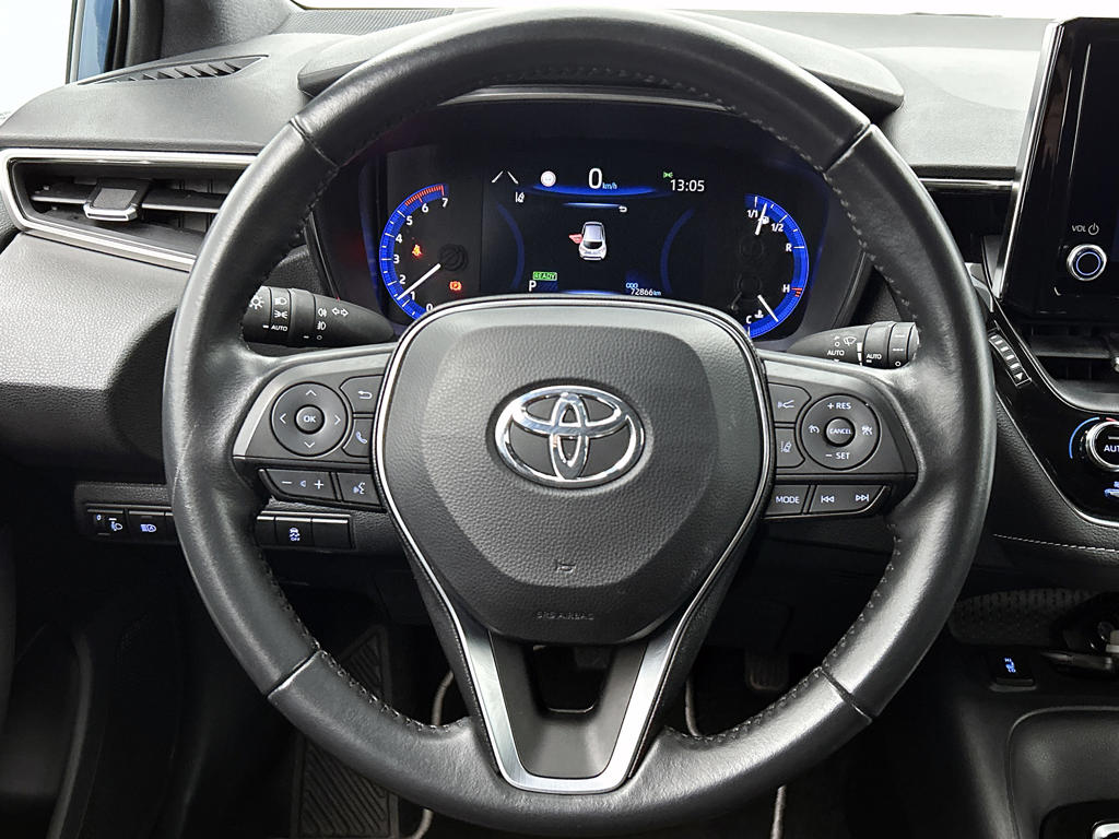 Deze Toyota is voorzien van verschillende intelligente veiligheidsvoorzieningen. Ze kijken tijdens het rijden als het ware met je mee, ze signaleren potentieel gevaarlijke situaties en in een aantal gevallen kunnen ze ook ingrijpen. Dat de auto steeds meer taken van de bestuurder overneemt, merk je bijvoorbeeld aan het systeem voor verkeersbord-detectie in deze auto. Deze Toyota Corolla is ook behulpzaam als het gaat om een rechte koers. Het Lane-keeping systeem signaleert en corrigeert als je onbedoeld de rijstrooklijnen dreigt te overschrijden. Forward collision warning is een automatisch waarschuwingssysteem dat direct in werking treedt bij gevaar voor een kop-staartbotsing. Ook helpen het hill hold functie, brake assist, vermoeidheidsherkenning en bandenspanningcontrolesysteem, jouw rit tot een veilige rit te maken.