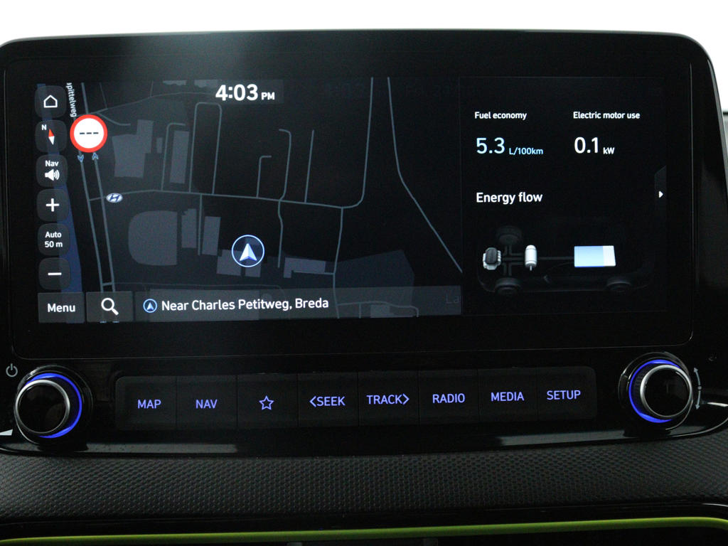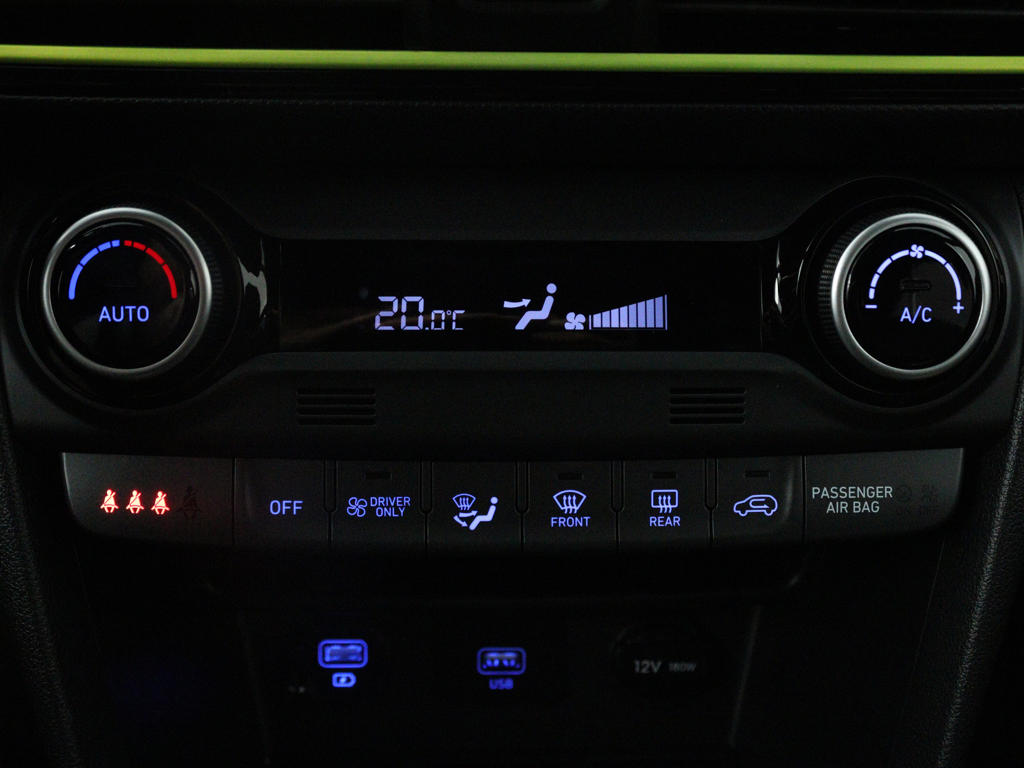 Inparkeren? Met de achteruitrijcamera heb je er geen omkijken meer naar! Met adaptive cruise control houdt de auto zelfstandig afstand tot jouw voorligger. Een veiligheidsverhogende optie waarmee je comfortabel onderweg bent. Zoals je van zo'n jonge auto mag verwachten, zijn hier ook de geavanceerde remote services aanwezig. Simpelweg met een app op uw smartphone controleer je op afstand de status van de auto en bedien je diverse functies. Voor een krachtige en natuurlijke geluidsweergave zorgt het high performance audiosysteem. Bij de luxe van deze auto hoort ook automatische airconditioning. Je bent in deze Hyundai ook voorzien van dashboard met spraakbediening, full map navigatiesysteem, schakelpaddles aan het stuur, DAB ontvangst, regensensor en keyless entry.