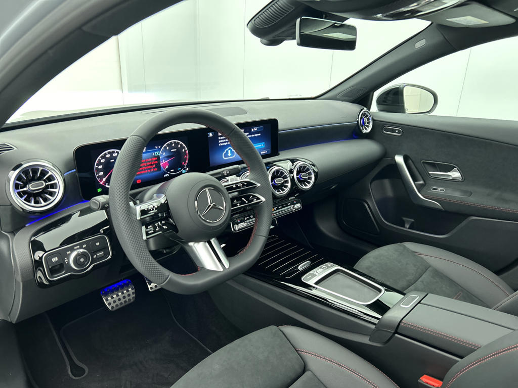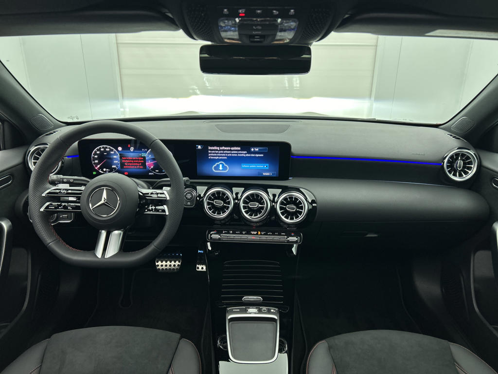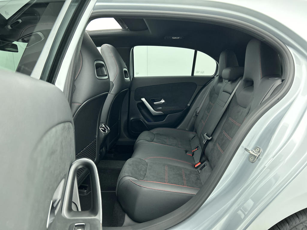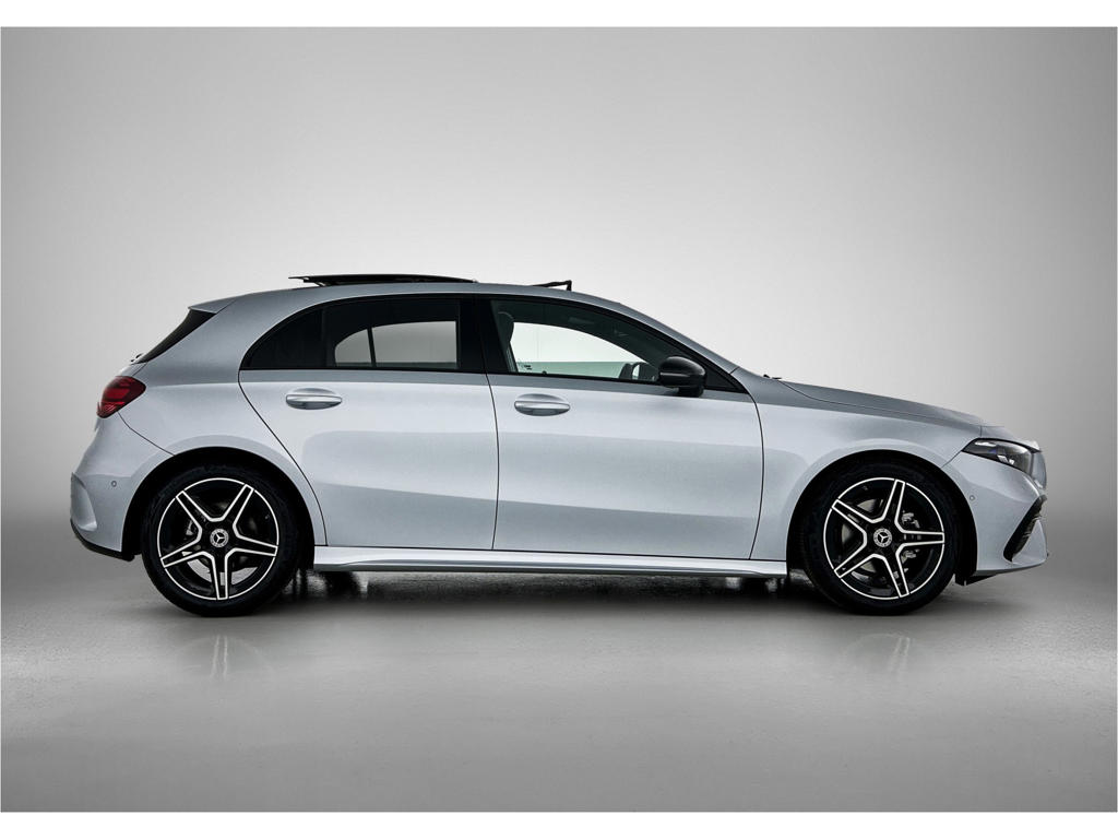 Handig, zo'n hatchback. Aan de achterzijde een extra deur, om makkelijk in en uit te laden. De AMG-styling voegt een aantal uitgesproken sportieve accenten toe. Dit is een splinternieuwe auto, die nu uit voorraad leverbaar is. De aandrijving komt voor rekening van een benzinemotor en een automatische transmissie. 's Winters komen de verwarmbare voorstoelen heerlijk van pas. De sportstoelen geven het interieur van deze A-klasse een super strakke en sportieve uitstraling. Het glazen panoramadak laat jou genieten van een wijds uitzicht en meer lichtinval. De koplampen zijn voorzien van matrix LED-verlichting waarmee je aanzienlijk verder kan kijken in het donker. Het systeem past zelf de lichtstraal aan op het moment tegenliggers verblind kunnen worden. In deze Mercedes-Benz profiteer jij onder andere ook van: 18 inch lichtmetalen velgen, AMG-styling, dynamisch onderstel, in delen neerklapbare achterbank, LED-achterlichten en verstelbare lendensteunen.