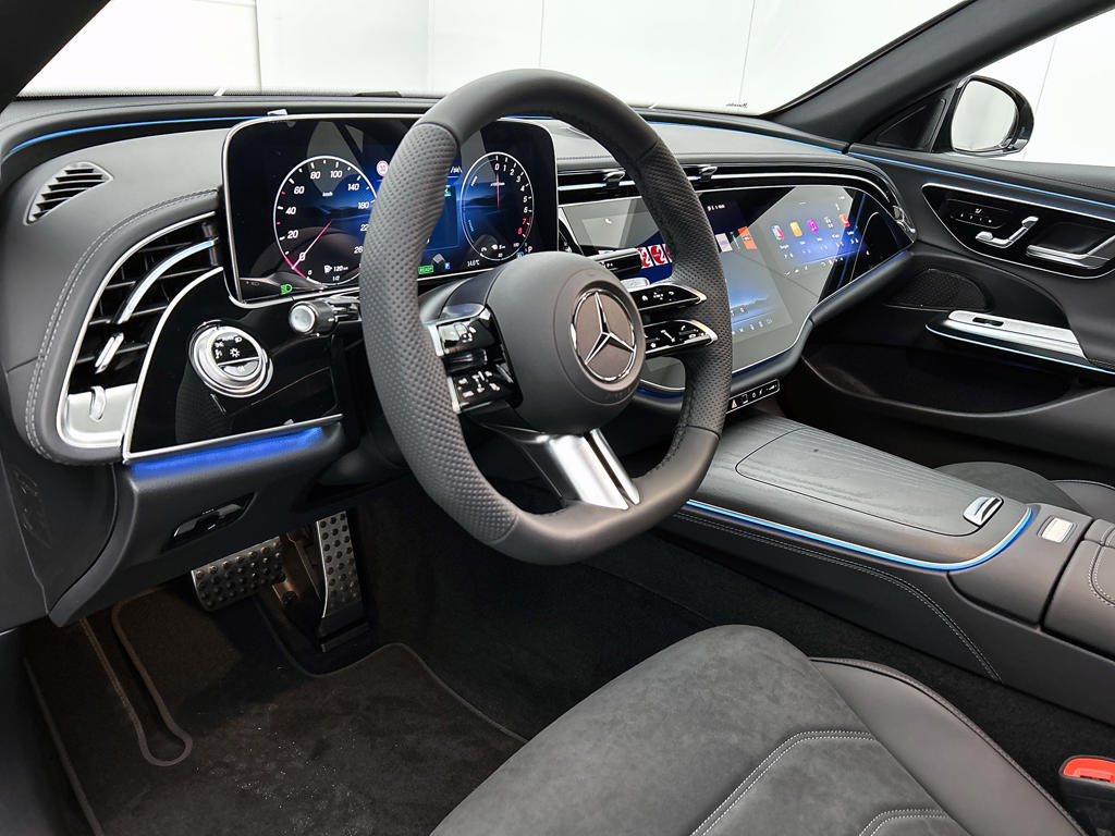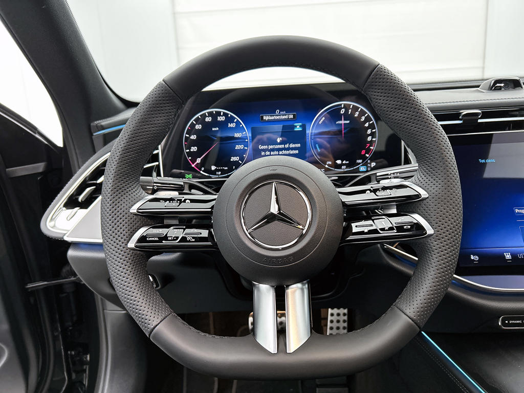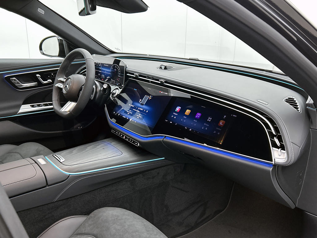 Modern design en bijzondere techniek bepalen de kwaliteiten van de hybride Mercedes-Benz E-klasse. En heel aantrekkelijk is de stoere, sportieve AMG Line Exterieur. Deze gloednieuwe auto is per direct uit onze voorraad leverbaar. De elektromotor zorgt voor snel en traploos optrekken bij ieder stoplicht. Een van de vele voordelen van deze hybride auto. Je past de stoelen moeiteloos aan, ze zijn elektrisch in te stellen en hebben bovendien een geheugen. Het interieur baadt in een zee van licht met het elektrische bediende glazen panoramadak. De elektrisch bedienbare achterklep opent met een druk op de knop. Dankzij de matrix LED-verlichting geven de koplampen ook in het donker daglicht. Bij de rijke uitrusting horen ook 20 inch lichtmetalen velgen, AMG Line Exterieur, adaptief dempingsysteem, warmtewerend glas, in delen neerklapbare achterbank en LED-achterlichten.