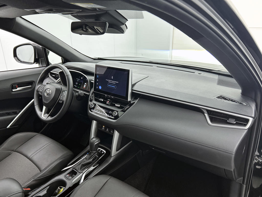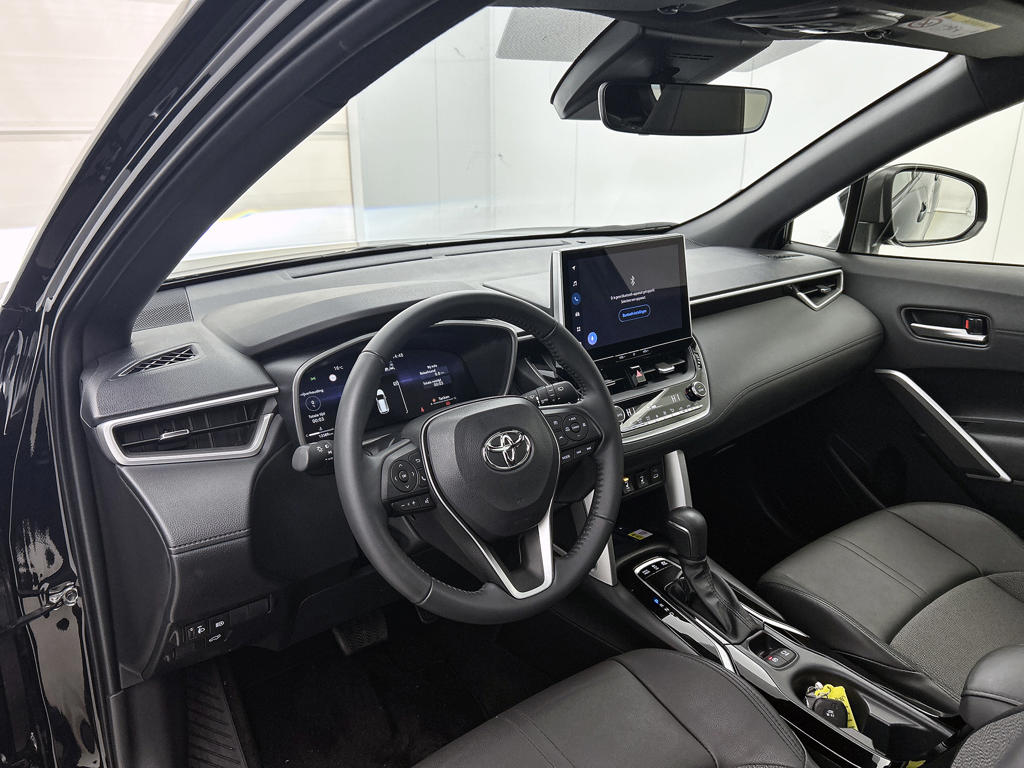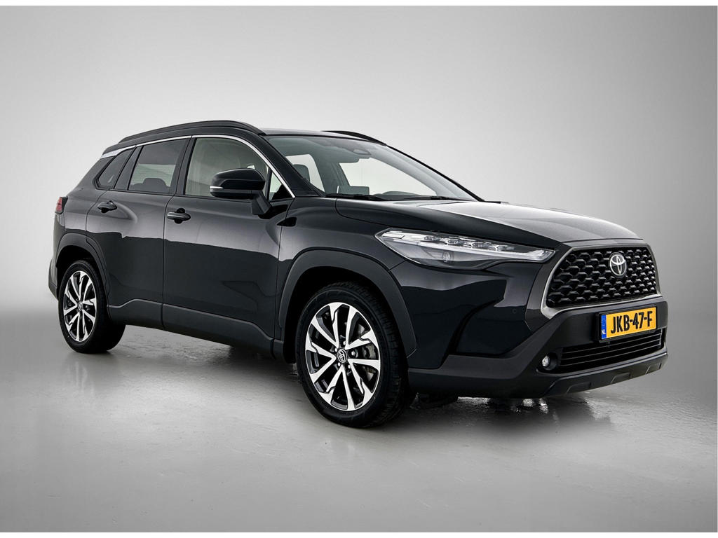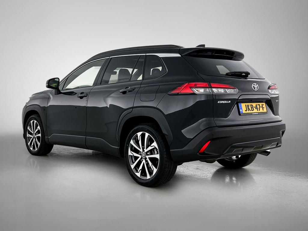 Zijn dynamische uiterlijk maakt al direct duidelijk wat voor rijervaring je van deze Toyota Corolla Cross mag verwachten: pure sportiviteit. De krachtige motor geeft deze Toyota uitstekende prestaties. Het lederen interieur maakt het echt af. Tijdens gure dagen is het prettig zitten in de verwarmbare voorstoelen. De elektrische achterklep opent met een druk op de knop, zodat jij gemakkelijk toegang heeft tot de bagageruimte. Met het grote glazen panoramadak geniet jij van maximale lichtinval. Bij de zeer complete uitrusting van deze auto behoren ook LED koplampen, donker getint glas achter, in delen neerklapbare achterbank en LED-achterlichten.
