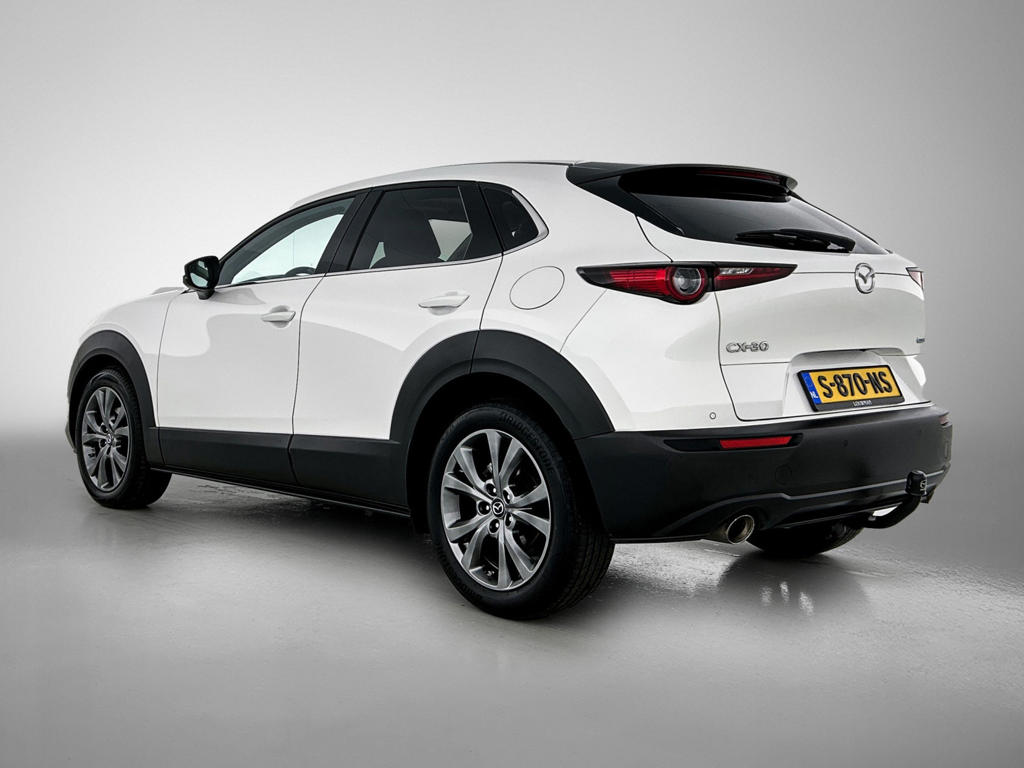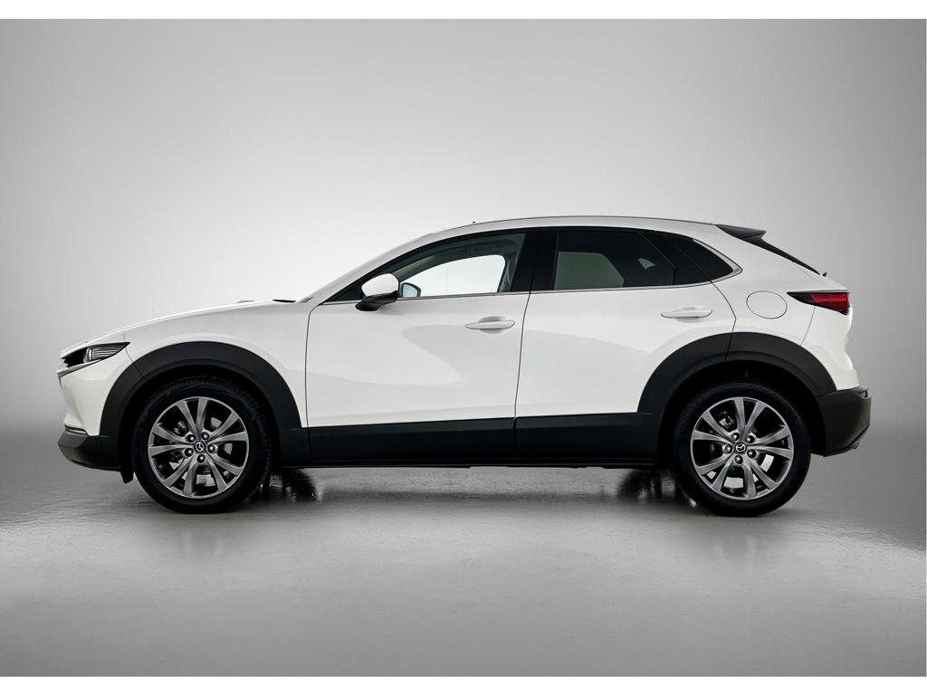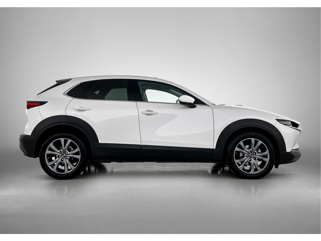 Het eigentijdse ontwerp en de toonaangevende techniek maken van iedere Japanse auto een kwaliteitsproduct. Dat is ook te merken aan deze Mazda CX-30. Minder vaak tanken? Dat gaat lukken, dankzij de hybride motor die zowel op brandstof als elektriciteit werkt. Een mooie combi, die merkbaar is in de portemonnee. We nemen je in gedachten even mee. Stop je bagage moeiteloos achterin dankzij de elektrisch bediende achterklep, neem plaats achter het stuur en zie meteen het luxe lederen interieur. Even het elektrisch bediende glazen panorama dak open en rijden maar! Stoelverwarming hoort ook bij de uitrusting van deze auto. Bij de uitrusting van deze Mazda horen onder meer 18 inch lichtmetalen velgen, LED koplampen, dakspoiler, donker getint glas achter, in delen neerklapbare achterbank en LED-achterlichten.