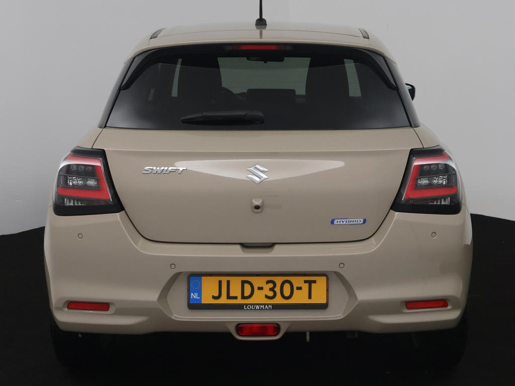 Alles vrij achter? De achteruitrijcamera laat het meteen zien. Adaptive cruise control is veilig en comfortabel. De snelheidsregelaar houdt automatisch afstand tot het voertuig dat voor je rijdt. Handig en veilig: Connected Services. Alle vitale functies en data van de auto check je via de app op je smartphone. Je bedient het full map navigatiesysteem en het audio-installatiesysteem met DAB-radio via knoppen op het stuur. Zo kun jij steeds jouw aandacht gericht houden op de weg. Deze Suzuki Swift is voorzien van sensoren aan de achterzijde om een achteropkomend verkeer waarschuwing te geven als de afstand tussen jou en een achterligger te klein is. Deze Suzuki is voorzien van electronic climate control, schakelpaddles aan het stuur, keyless entry, bagage afdekhoes en boordcomputer.