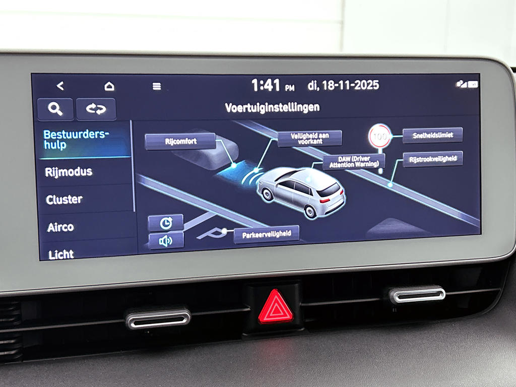 De nieuwste veiligheidssystemen komen in deze Hyundai IONIQ 5 samen. Dat de auto steeds meer taken van de bestuurder overneemt, merk je bijvoorbeeld aan het systeem voor verkeersbord-detectie in deze auto. Het Lane-keeping systeem is altijd alert. Over de rijstrooklijntjes gaan is er niet bij. Forward collision warning waarschuwt voor een kop-staart botsing. Je bent mede dankzij hill hold functie, vermoeidheidsherkenning, autonoom remsysteem en bandenspanningcontrolesysteem steeds veilig onderweg.