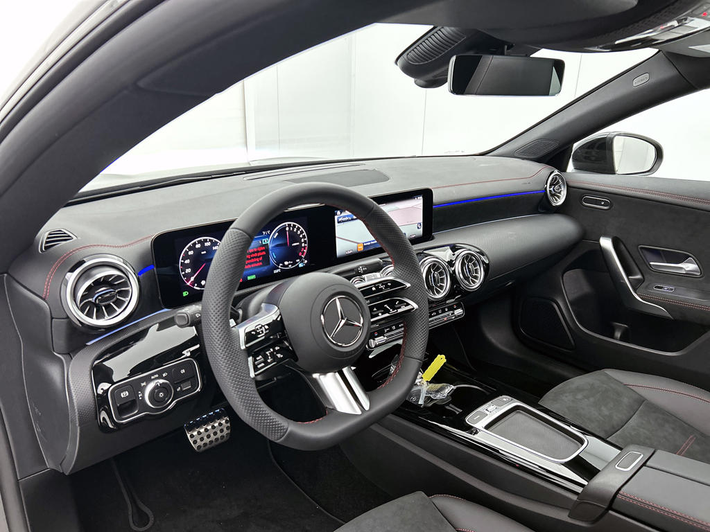 Decennia aan onverwoestbare klasse en prestaties. Dat haalt u in huis met deze fraaie Mercedes. 'The best or nothing', zoals het merk zelf zegt. Exclusiviteit en sportiviteit komen samen in de AMG-styling. Deze gloednieuwe auto is per direct uit onze voorraad leverbaar. De hybride motor combineert een elektromotor met een verbrandingsmotor. Je kan dus kiezen. Een weldaad voor jou en je bijrijder: deze Mercedes-Benz CLA-klasse heeft verwarmbare voorstoelen. In het interieur domineren de sportstoelen, die er niet alleen stijlvol uitzien, maar die jou ook optimaal ondersteunen tijdens de rit. De achterklep opent automatisch met een druk op de knop. Handig als je met volle handen staat. Overdag een weidse zichthoek en 's avonds het lichtspel in de binnenruimte: dat geeft het glazen panoramadak! Opvallend is de geavanceerde matrix LED-verlichting met daglichtkwaliteit. De koplampen dimmen automatisch het deel van de lichtstraal waar voor- of tegenliggers in rijden. De overige segmenten blijven aan en verlichten de weg maximaal. De uitmonstering van deze auto wordt gecompleteerd door onder meer 18 inch lichtmetalen velgen, AMG-styling, dynamisch onderstel, trailer assistent, in delen neerklapbare achterbank en verstelbare lendensteunen.