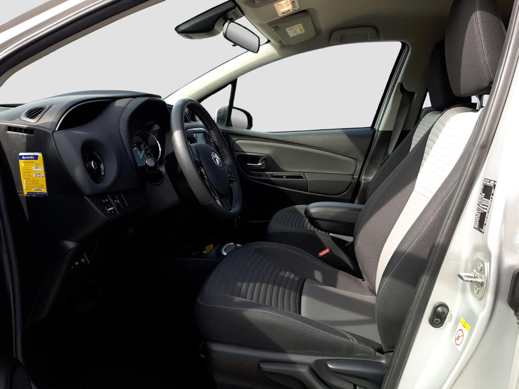 Zoals je mag verwachten van deze Toyota Yaris is hij uitgerust met een reeks aan actieve veiligheidssystemen. Dat de auto steeds meer taken van de bestuurder overneemt, merk je bijvoorbeeld aan het systeem voor verkeersbord-detectie in deze Toyota. Het Lane-keeping systeem zorgt voor een automatisch constante positie binnen de rijstrook. Afdwalen is uitgesloten. Voor meer veiligheid detecteert deze auto het risico van een aanrijding tijdig via de forward collision warning. In deze Toyota vinden we verder een hill hold functie, brake assist en bandenspanningcontrolesysteem.