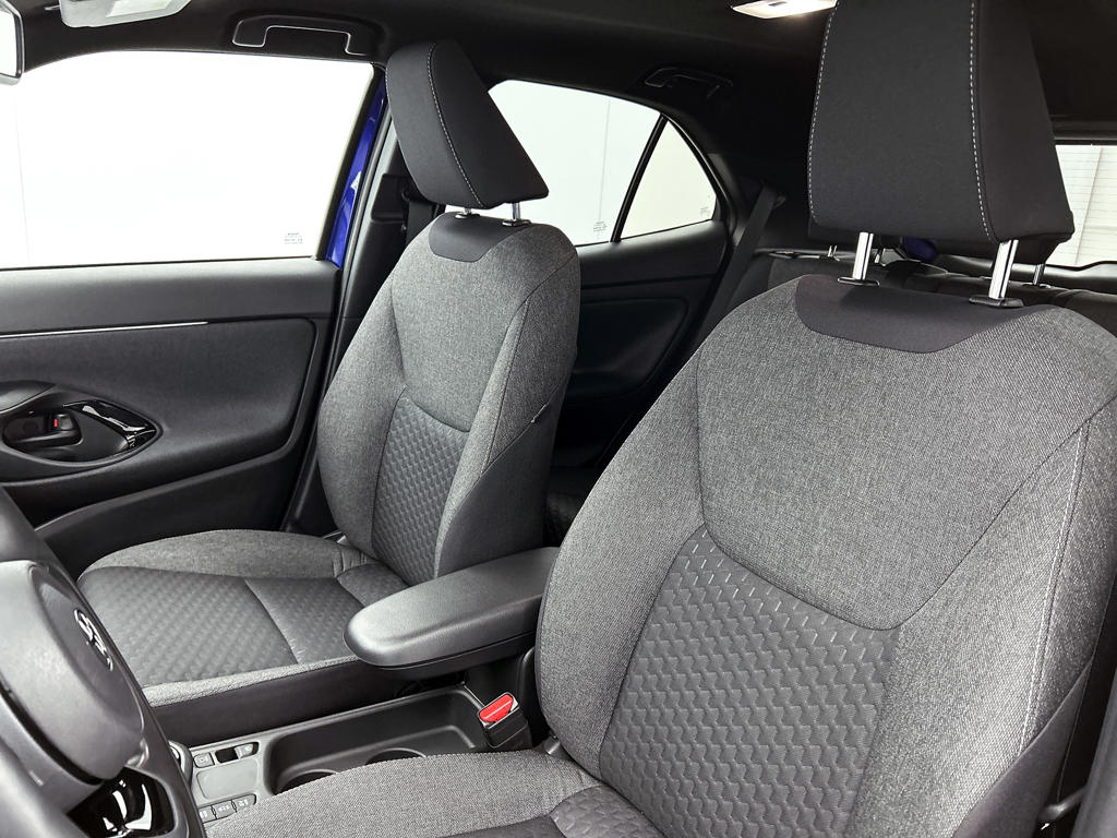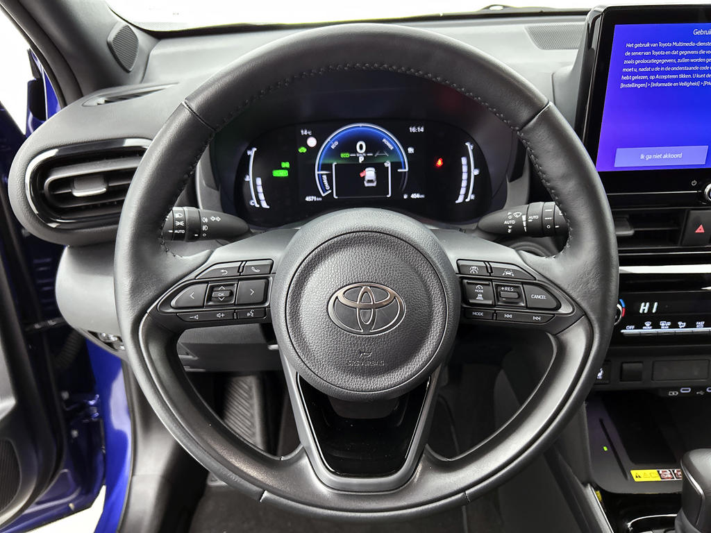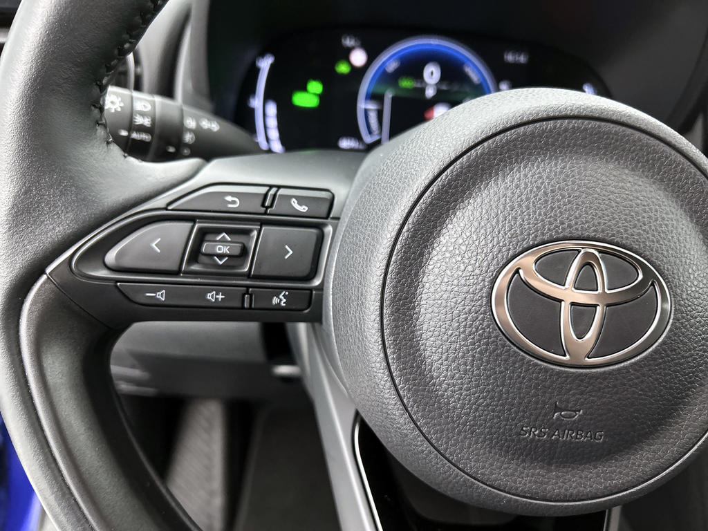 Voor het overzicht tijdens iedere rit is deze Toyota Yaris Cross voorzien van een gemakkelijk afleesbaar digitaal dashboard. Niets achter deze auto blijft verborgen door de achteruitrijcamera. Een veilig gevoel! Als je de adaptive cruise control inschakelt, regelt de auto zelf de snelheid en de afstand tot de auto voor je. Ingericht op Connected Services, voor een nog veiligere en comfortabelere rit. Een goede veiligheidsvoorziening is de spraakbediening en stuurbediening voor belangrijke functies. De auto is natuurlijk voorzien van een full map navigatiesysteem en het audio-installatiesysteem biedt glasheldere geluidskwaliteit dankzij DAB-ontvangst. Natuurlijk behoren automatische airconditioning, regensensor, keyless entry, buitentemperatuurmeter, automatisch dimmende binnenspiegel en lederen stuur ook tot de uitrusting van deze complete auto.