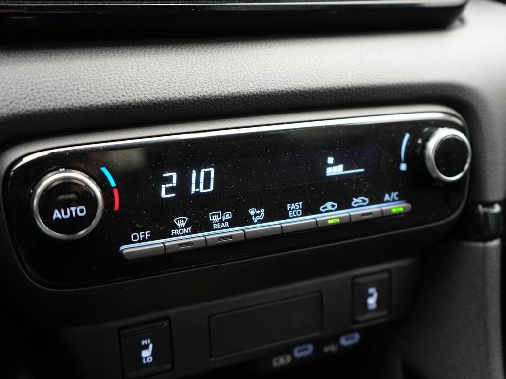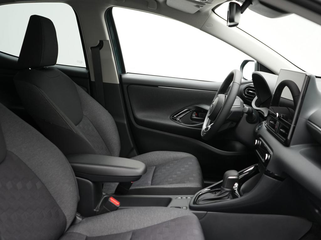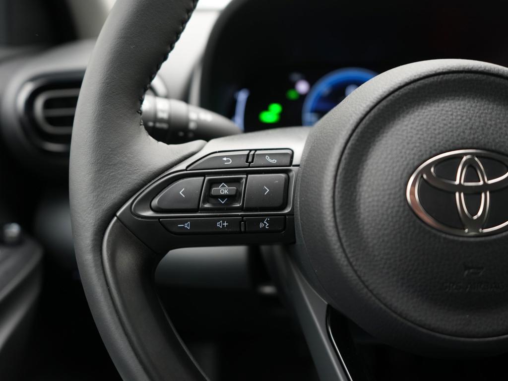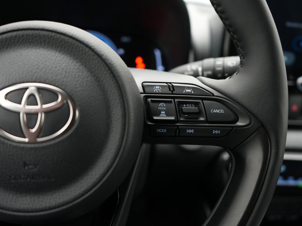 Voor het overzicht tijdens iedere rit is deze Toyota Yaris voorzien van een gemakkelijk afleesbaar digitaal dashboard. De hoogwaardige achteruitrijcamera en het display met hoge resolutie zorgen dat helemaal niets je meer ontgaat van wat er achter de auto gebeurt. Adaptive cruise control houdt de ingestelde snelheid vast en houdt automatisch afstand tot jouw voorligger. In één oogopslag weet je de complete systeemstatus van deze auto. Dankzij Connected Services. Een optie die de veiligheid verhoogt, is de bediening vanaf het stuur van het audio-installatiesysteem (met DAB-radio!) en het full map navigatiesysteem. Deze Toyota is voorzien van automatische airconditioning, draadloos opladen, regensensor, keyless entry, buitentemperatuurmeter en automatisch dimmende binnenspiegel.