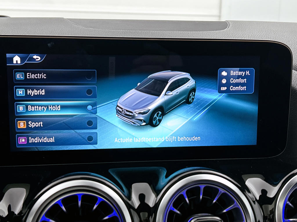 Natuurlijk, dit is een innovatieve auto met zijn hybridetechniek. Maar het is bovendien ook een auto die is gebouwd voor jarenlang rijcomfort. Ook qua looks springt deze auto eruit, vanwege de fraaie AMG-styling. Het gaat hier om een nieuwe auto, die uit voorraad leverbaar is. Elektrisch rijden of benzine? Deze hybride Mercedes-Benz GLA combineert de pluspunten van allebei naar keuze. Zit je goed? De stoelen zijn eenvoudig instelbaar dankzij de elektrische bediening met geheugen. Een praktische extra is de elektrisch bedienbare achterklep die opent en sluit met een druk op de knop. Het glazen panoramadak zorgt voor een onovertroffen uitzicht. Voorzien van matrix LED-verlichting. De auto dimt precies dat deel van de lichtstraal waar de voor- of tegenliggers in rijden. De overige segmenten blijven aan en verlichten de weg. Tot de voorzieningen van deze auto behoren AMG-styling, warmtewerend glas, dynamisch onderstel, in delen neerklapbare achterbank en verstelbare lendensteunen.