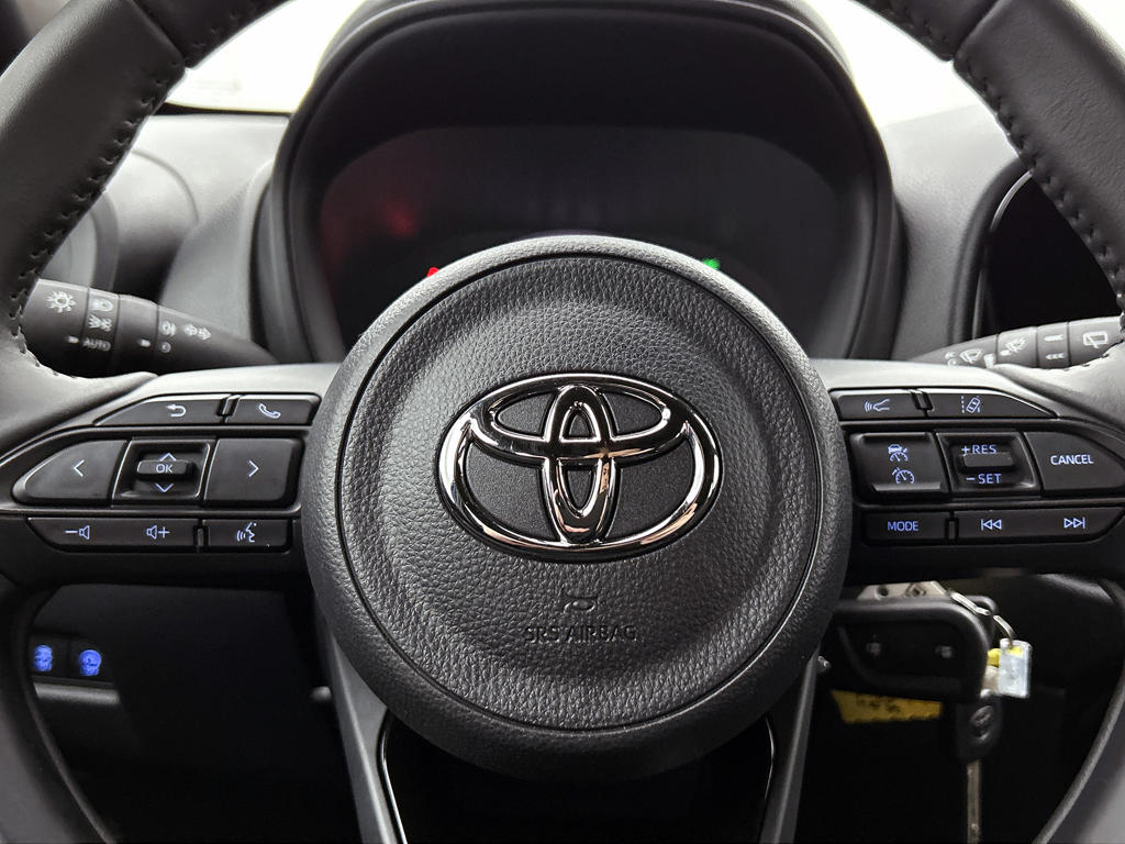 De Toyota Aygo X is jouw trouwe partner onderweg, want hij houdt continu voor jou de situatie op en om de weg in de gaten. Volautomatische veiligheidssystemen kunnen daarbij ingrijpen om je voor gevaarlijke situaties te behoeden. Een belangrijke bijdrage aan de veiligheid onderweg levert de verkeersbord-detectie in deze Toyota. Een camera houdt de juiste koers binnen de rijstrook in de gaten en het Lane-keeping systeem corrigeert bij afwijkingen. Deze Toyota Aygo X blijft altijd alert. Zo wordt gebruik gemaakt van forward collision warning. Bij het mogelijke risico op een aanrijding met een voertuig voor u, slaat het systeem alarm. Ook helpen het hill hold functie, brake assist en bandenspanningcontrolesysteem, jouw rit tot een veilige rit te maken.