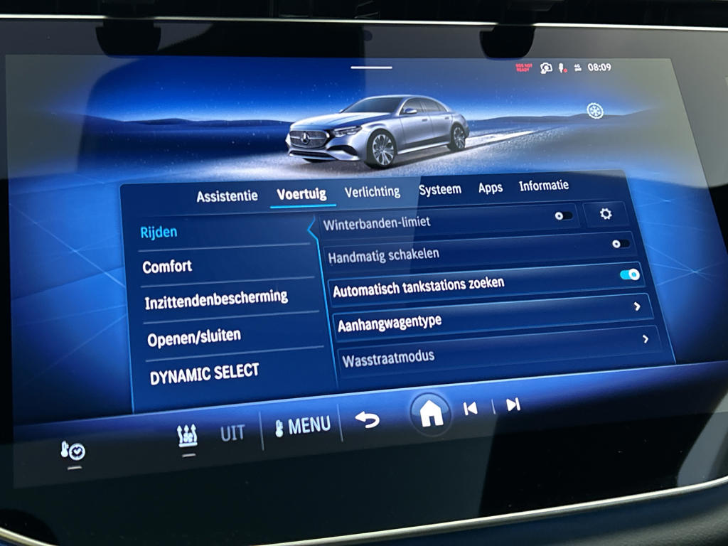 Tijdens de rit wordt je als bestuurder ondersteund door verschillende systemen die de weg en jouw omgeving in de gaten houden. De camera van de verkeersborddetectie herkent verschillende soorten verkeersborden en toont deze op het dashboard. Het Lane-keeping systeem let constant op en waarschuwt of corrigeert als je onoplettend over de lijnen van de rijstrook gaat. Rijdt een ander voertuig in jouw dode hoek dan waarschuwt het systeem met een signaal. In deze Mercedes-Benz vinden we verder een forward collision warning system, vermoeidheidsherkenning, autonoom remsysteem en bandenspanningcontrolesysteem.