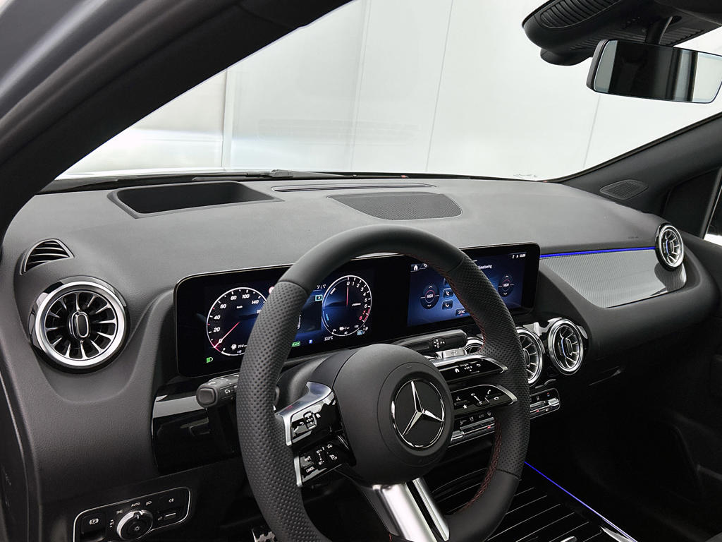 Als je motto is 'The best or nothing', laat je zien dat je ambities hebt. Maar dat wisten we van Mercedes al heel lang. Wordt dit je eerste Mercedes of de volgende in een lange rij? In beide gevallen heb je helemaal gelijk. Stijlvolle sportiviteit in uitstraling komt van de AMG-styling. Het is een nieuwe auto, hij is nu uit voorraad leverbaar. We weten het: benzinerijden is een dure grap. Elektrisch heeft de toekomst. Met de hybride motor van deze Mercedes-Benz B-klasse heb je de keuze: elektrisch als het kan, benzine als het moet. Een heerlijk zonnetje, of indrukwekkende wolkenpartijen? Bekijk ze onbelemmerd door het elektrisch bediende glazen panorama dak. Met één klik open en dicht, net als de elektrisch bedienbare achterklep. Neem plaats op de comfortabele stoelen. Dankzij de elektrische bediening en het geheugen is het eenvoudig om hierin de beste zitpositie te vinden. De koplampen zijn voorzien van matrix LED-verlichting waarmee je aanzienlijk verder kan kijken in het donker. Het systeem past zelf de lichtstraal aan op het moment tegenliggers verblind kunnen worden. Ook 18 inch lichtmetalen velgen, AMG-styling, dynamisch onderstel, in delen neerklapbare achterbank, verstelbare lendensteunen en snelheidsafhankelijke stuurbekrachtiging zijn aan boord.