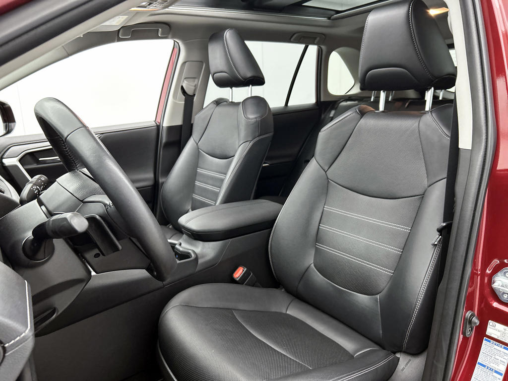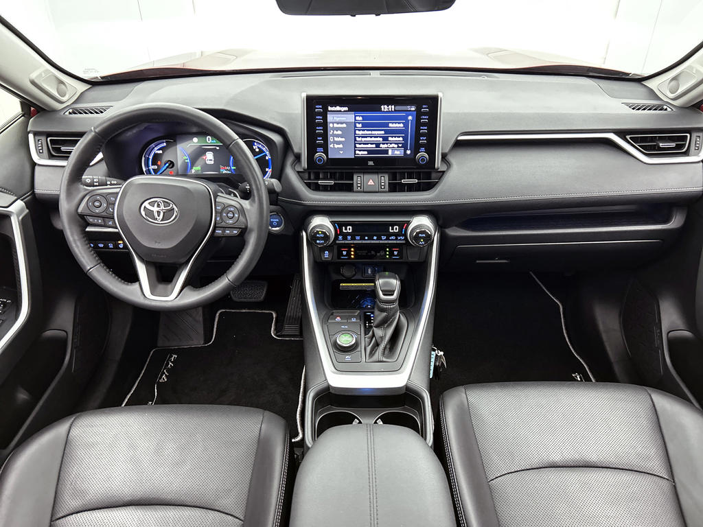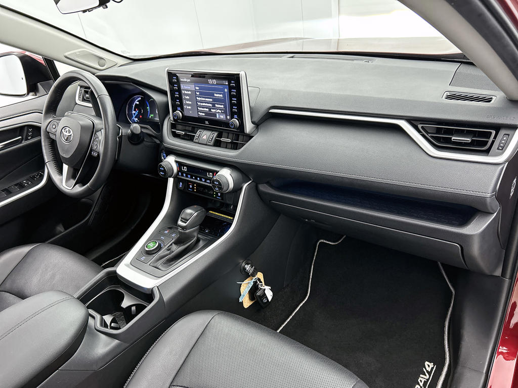 Het is een auto die er nog jaren tegenaan kan, deze Toyota RAV4 die 28064 kilometer op de teller heeft staan. De hybride combi van een verbrandingsmotor en een elektromotor zorgt voor zeer laag brandstofverbruik en veel minder uitstoot. De luxe van het lederen interieur, gecombineerd met het gemak van het elektrisch bediende glazen panorama dak en de superhandige elektrisch bedienbare achterklep zorgen voor een wel heel complete uitvoering. Kijk, en die stoelverwarming, dat is nou echt comfort. Helemaal als het buiten winters aanvoelt. Tot de uitrusting behoren ook 19 inch lichtmetalen velgen, LED koplampen, trailer assistent, donker getint glas achter, in delen neerklapbare achterbank en LED-achterlichten.
