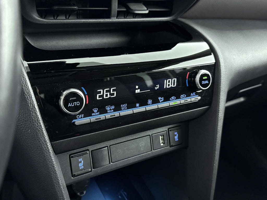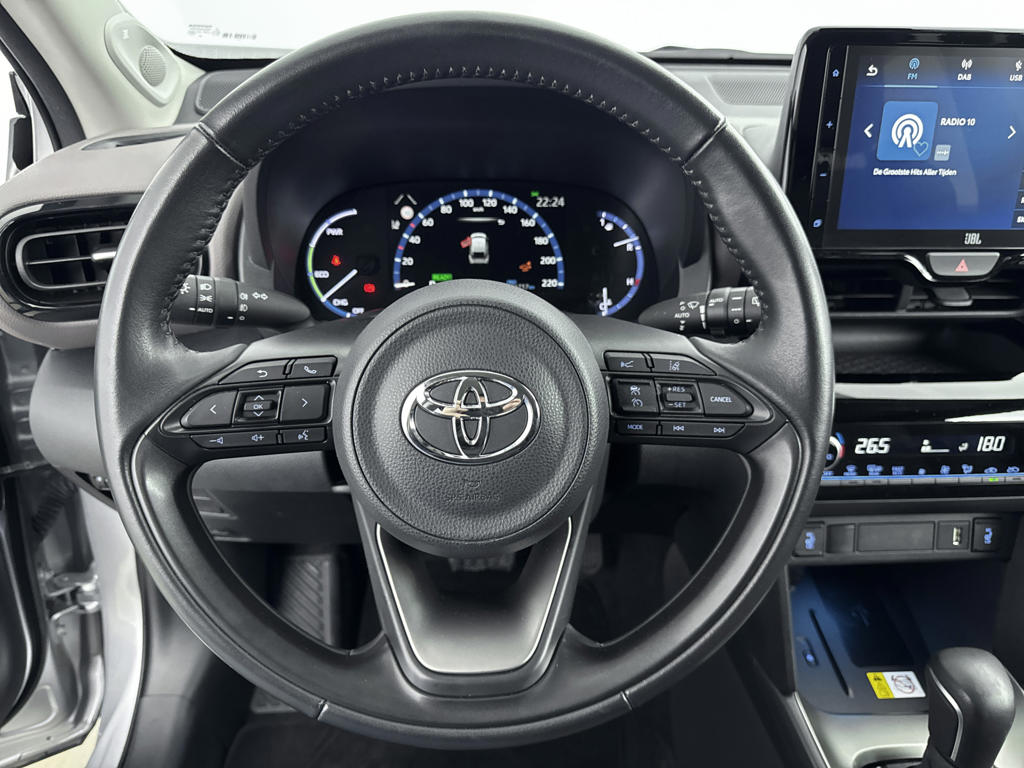 Met het digitale dashboard kan je de cockpit-interface naar jouw voorkeur instellen. De achteruitrijcamera maakt inparkeren gemakkelijker dan ooit. Als je de adaptive cruise control inschakelt, regelt de auto zelf de snelheid en de afstand tot de auto voor je. Deze Toyota Yaris Cross is voorzien van remote services. Via je smartphone bedien je diverse functies ook op afstand en krijgt je informatie over de status van je auto. Voor een krachtige en natuurlijke geluidsweergave zorgt het high performance audiosysteem. Deze Toyota is voorzien van full map navigatiesysteem, automatische airconditioning, draadloos opladen, DAB ontvangst, regensensor en keyless entry.