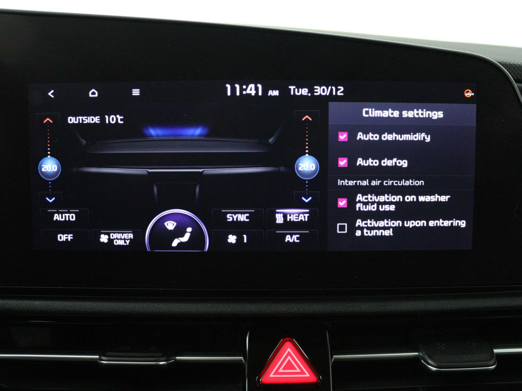 De intelligente veiligheidssystemen in deze auto waken continu over jouw veiligheid. Wat deze auto ook kan, is lezen. Hij 'leest' voor jou de verkeersborden tijdens de rit en attendeert je erop door ze op het dashboard te projecteren. Met het Lane-keeping systeem ga je nooit onbedoeld over de streep. Op een kop-staartbotsing zit niemand te wachten. Daarom is de forward collision warning onderweg constant alert en berekent via een sensor de veilige afstand tot voorliggers. Dankzij veiligheidsvoorzieningen als hill hold functie, vermoeidheidsherkenning, autonoom remsysteem en bandenspanningcontrolesysteem, ben je steeds veilig onderweg.