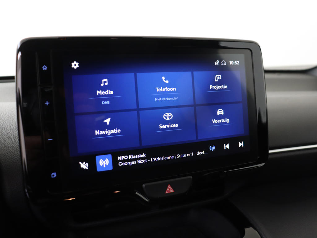 Het digitale dashboard is niet alleen enorm fraai en handig, maar draagt actief bij aan een veilige en slimme rit. De achteruitrijcamera laat duidelijk zien hoeveel ruimte je nog hebt bij het inparkeren. Adaptive cruise control is een comfortabele en veilige optie. Het systeem reguleert de snelheid en houdt automatisch afstand tot jouw voorligger. De jeugd is niet los te maken van hun smartphone, en dat zie je ook aan deze jonge auto. Via een speciale app sta je overal en altijd in contact met je vierwieler. Superhandig! Nooit meer de weg kwijt: daarvoor zorgt het onboard full map navigatiesysteem. De uitrusting van deze Toyota is met automatische airconditioning, DAB ontvangst, regensensor, keyless entry, lederen stuur en lederen versnellingspook behoorlijk compleet.
