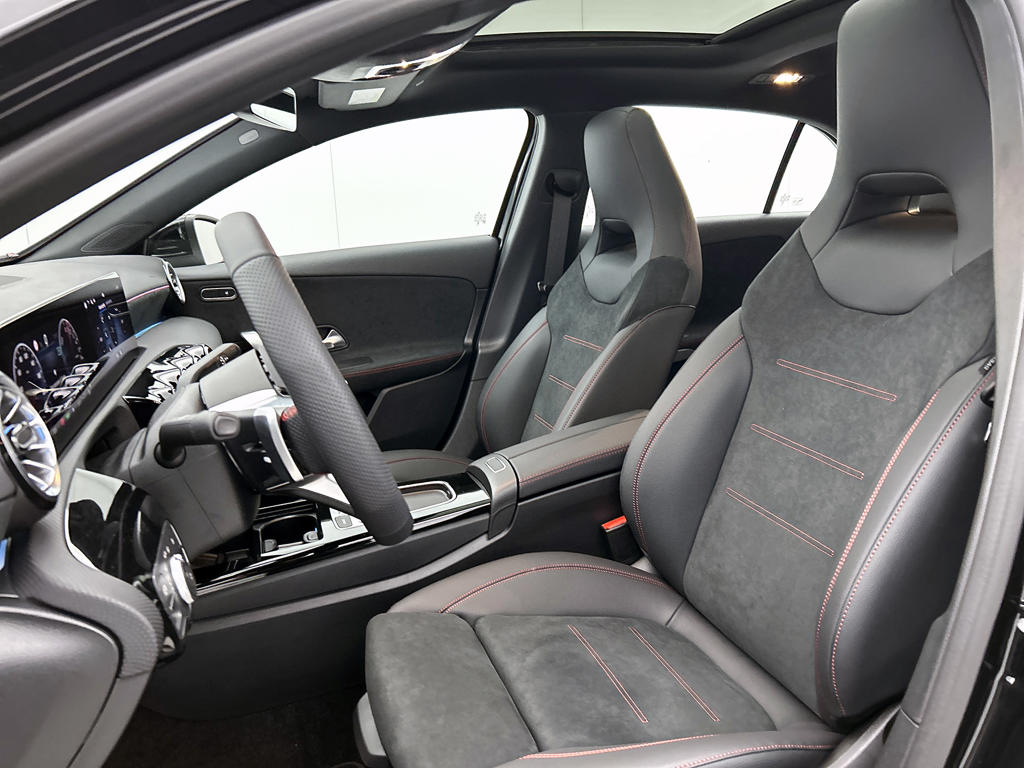 De vooruitstrevende hybride aandrijflijn van deze auto geeft vandaag al antwoord op de belangrijke vragen van morgen. De verschillende elementen van de AMG-styling accentueren de dynamische lijnvoering van deze A-klasse. Het is een nieuwe auto, hij is nu uit voorraad leverbaar. Zuiniger, schoner en stiller: dat zijn de voordelen van de hybride motor in deze Mercedes-Benz A-klasse. De slimme combi van brandstof- en elektromotor is goed voor het milieu én de portemonnee! In de verwarmbare voorstoelen zitten is elke keer een welkom gevoel. Voor het pittige uiterlijk én goed gesteund zitten zorgen de sportstoelen. Het glazen panoramadak laat meer licht binnen in het interieur en zorgt voor een magnifiek uitzicht naar buiten. Perfect zicht bij nacht en slecht weer? Dat leveren de koplampen met matrix LED-verlichting. Ook 18 inch lichtmetalen velgen, AMG-styling, dynamisch onderstel, in delen neerklapbare achterbank, LED-achterlichten en verstelbare lendensteunen zijn aan boord.