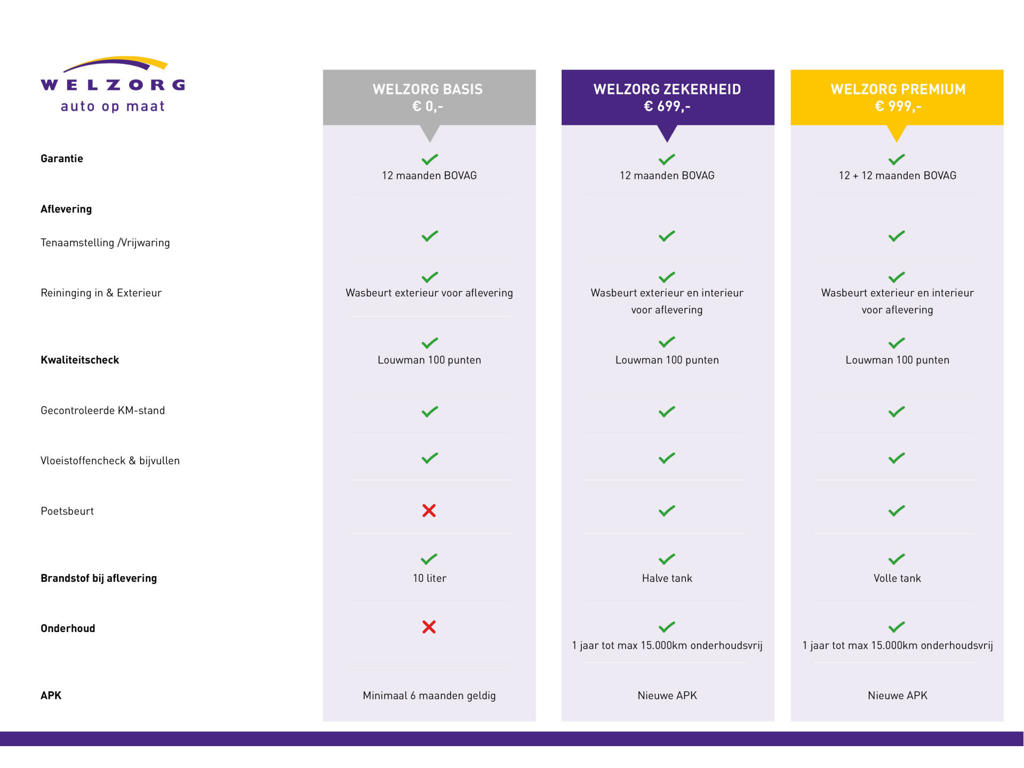 Welzorg Auto op Maat is aangesloten bij BOVAG. Dat betekent kopen met zekerheid én 12 maanden garantie. Wel zo fijn natuurlijk. Daarnaast rijd je weg met een ruim geldige APK.
