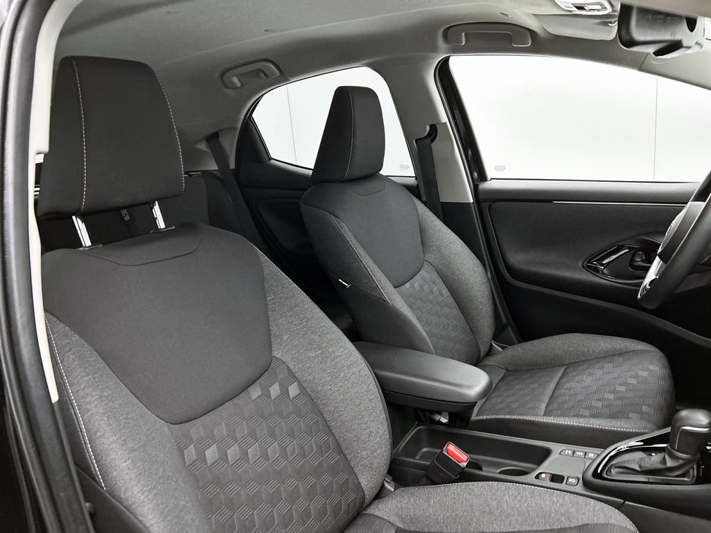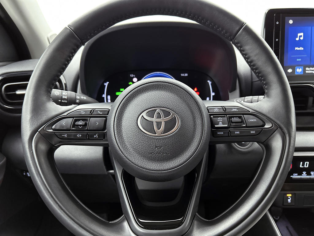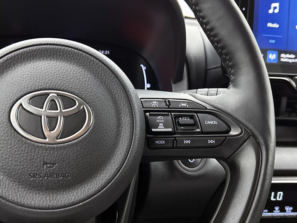 Het digitale dashboard is qua lay-out en zichtbaarheid superslim ingedeeld. Alle functies in één keer in beeld! Kommaar-kommaar-kommaar, aldus de achteruitrijcamera. Iedere centimeter vrije ruimte komt haarscherp in beeld. Schadevrij inparkeren maar! Met adaptive cruise control houdt de auto zelfstandig afstand tot jouw voorligger. Een veiligheidsverhogende optie waarmee je comfortabel onderweg bent. Deze Toyota Yaris is 'connected'. Belangrijke functies worden permanent gemeten en zijn uit te lezen via een speciale app, ook op afstand. Laat je onderweg niet afleiden, de bediening van het audio-installatiesysteem en ook het full map navigatiesysteem gaat met knoppen op het stuur. Natuurlijk is de audio-installatie voorzien van DAB-ontvangst. Met automatische airconditioning, draadloos opladen, regensensor, keyless entry, buitentemperatuurmeter en automatisch dimmende binnenspiegel is deze auto helemaal compleet.