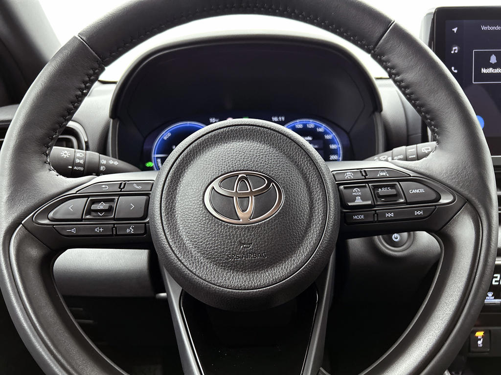 Parkeer en kijk niet om! De achteruitrijcamera doet dat voor je. Als je de adaptive cruise control inschakelt, regelt de auto zelf de snelheid en de afstand tot de auto voor je. Dankzij Connected Services heb je overal en altijd je dashboard op zak. Alle belangrijke functies zijn te checken via de app. Je rijdt snel, zuinig en zeker naar je bestemming met het full map navigatiesysteem. Bij verandering van rijrichting analyseert de kruisend verkeer detectie automatisch of tegenliggers een risico vormen. Zo ja, dan volgt meteen een waarschuwing. Deze Toyota is voorzien van electronic climate control, draadloos opladen, DAB ontvangst, regensensor, keyless entry en buitentemperatuurmeter.