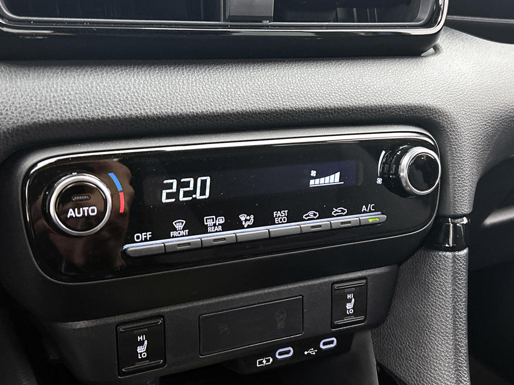 Het digitale dashboard rekent mee, denkt mee en rijdt mee. Alle info overzichtelijk in beeld, overal. Nooit meer parkeerschade dankzij de achteruitrijcamera. Adaptive cruise control houdt de ingestelde snelheid vast en houdt automatisch afstand tot jouw voorligger. Handig en veilig: Connected Services. Alle vitale functies en data van de auto check je via de app op je smartphone. Het audio-installatiesysteem met DAB-ontvangst en het full map navigatiesysteem bedien je veilig met knoppen op het stuur. Met automatische airconditioning, draadloos opladen, regensensor, keyless entry, buitentemperatuurmeter en automatisch dimmende binnenspiegel is deze Toyota helemaal compleet.