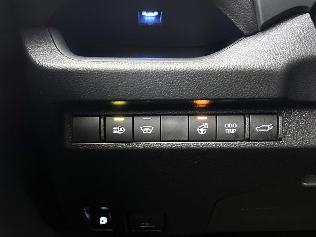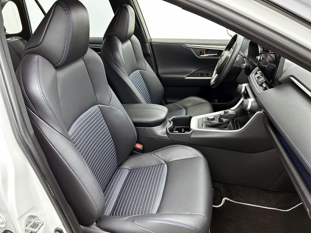 Hij is stijlvol en comfortabel, deze Toyota RAV4, en hij is ontworpen om jou veilig en comfortabel te laten rijden onder alle omstandigheden. Elektrisch rijden of liever benzine? Kiezen hoeft niet, want de hybride motor maakt het allebei mogelijk. Behaaglijk onderweg zijn? Als bestuurder geniet je van de verwarmbare voorstoelen. Net als je bijrijder! De achterklep opent automatisch met een druk op de knop. Handig als je met volle handen staat. Geen gekleum meer in de koude dagen. Het verwarmd stuurwiel voelt als een weldaad na het ijskrabben. Bij de uitrusting van deze auto horen onder meer 19 inch lichtmetalen velgen, LED koplampen, trailer assistent, donker getint glas achter, in delen neerklapbare achterbank en LED-achterlichten.