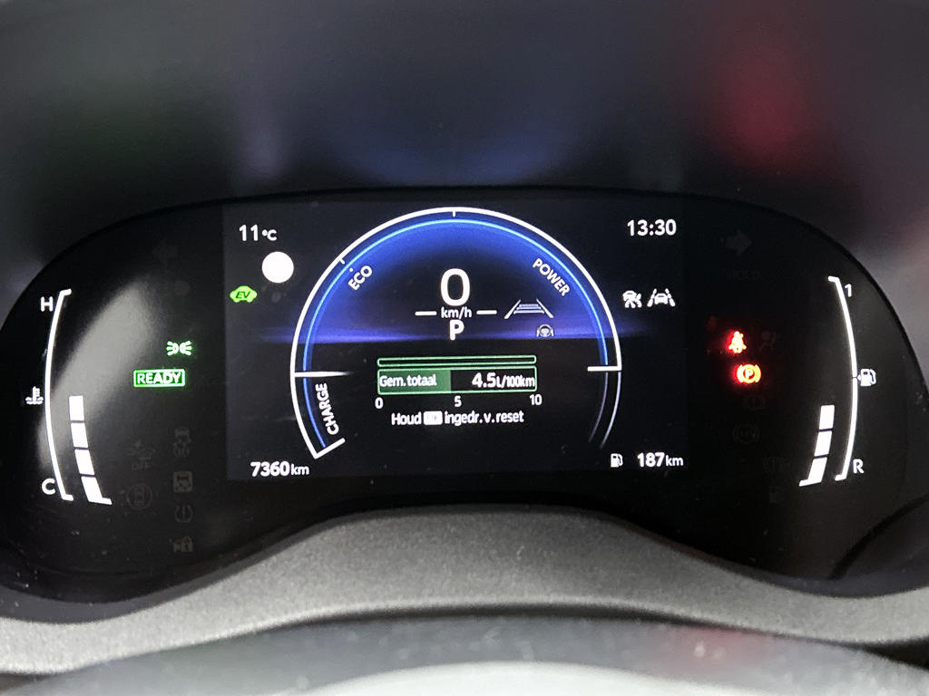 Met het digitale dashboard van deze auto is de aanpassing van jouw cockpitinterface een fluitje van een cent. Geen nekkramp of spiegelwerk meer bij het achteruitrijden: de achteruitrijcamera kijkt en ziet alles! Adaptive cruise control houdt de ingestelde snelheid vast en houdt afstand tot het voertuig voor je. Zoals je van zo'n jonge auto mag verwachten, zijn hier ook de geavanceerde remote services aanwezig. Simpelweg met een app op uw smartphone controleer je op afstand de status van de auto en bedien je diverse functies. Een optie die de veiligheid verhoogt, is de bediening vanaf het stuur van het audio-installatiesysteem (met DAB-radio!) en het full map navigatiesysteem. Als je wilt kun jij beiden zelfs met je stem bedienen. Je bent in deze Toyota ook voorzien van automatische airconditioning, draadloos opladen, regensensor, keyless entry, buitentemperatuurmeter en automatisch dimmende binnenspiegel.