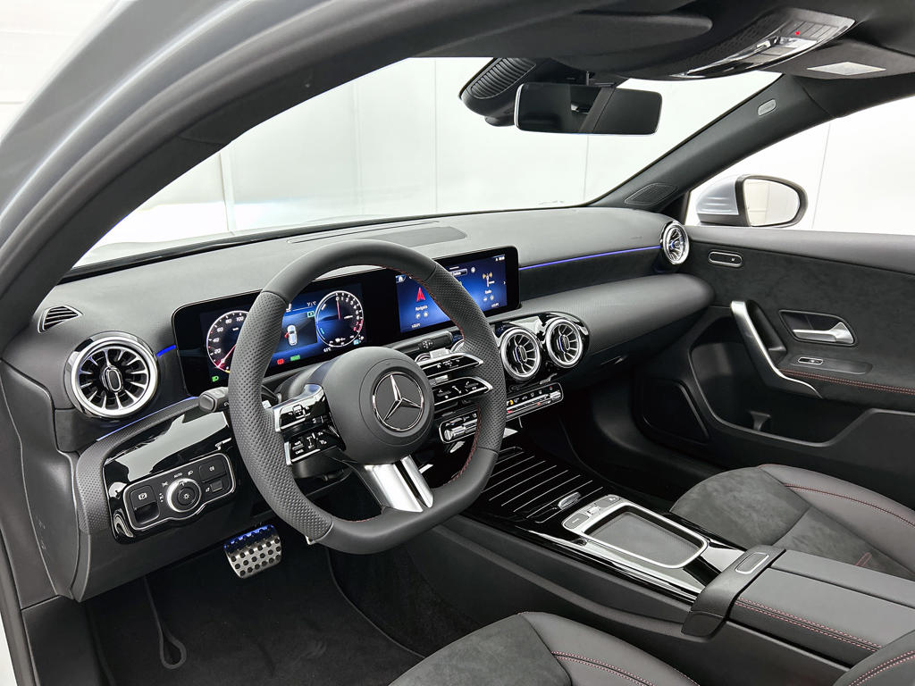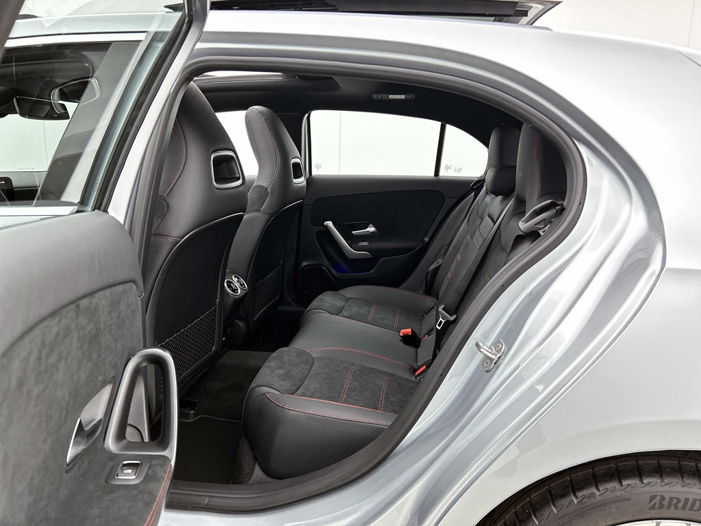 De ruimte van een stationwagen in het uiterlijk van een handige stadsauto. Daarmee noemen we meteen een van de grootste pluspunten van deze hatchback. Het AMG-styling pakket maakt direct duidelijk waar deze Mercedes-Benz voor staat: onversneden sportiviteit en rijdynamiek. Het gaat hier om een nieuwe auto, die uit voorraad leverbaar is. De aandrijving van deze Mercedes-Benz wordt verzorgd door een viercilinder motor en een automatische transmissie. Een weldaad voor jou en je bijrijder: deze Mercedes-Benz A-klasse heeft verwarmbare voorstoelen. De sportstoelen zorgen voor een strak uiterlijk én een uitstekende zitsteun. Het glazen panoramadak laat meer licht binnen in het interieur en zorgt voor een magnifiek uitzicht naar buiten. Verblinding van tegenliggers is er niet meer bij, dankzij de koplampen met matrix LED-verlichting. En toch de kwaliteit van daglicht in het donker! Ook 18 inch lichtmetalen velgen, AMG-styling, dynamisch onderstel, in delen neerklapbare achterbank, LED-achterlichten en verstelbare lendensteunen horen tot de voorzieningen op deze auto.