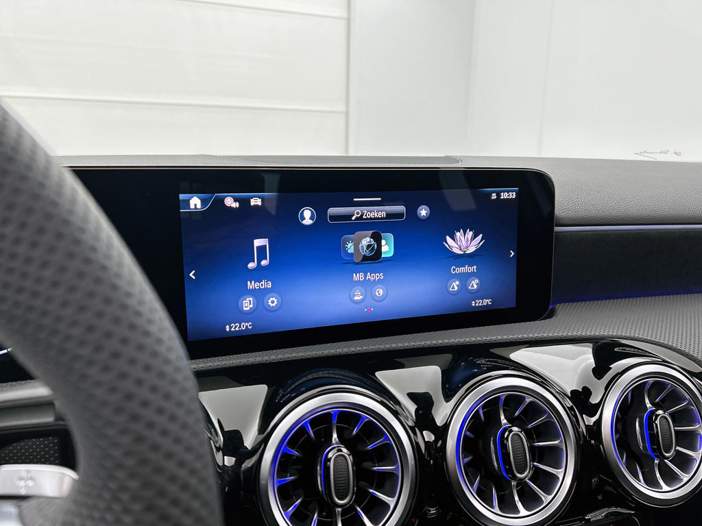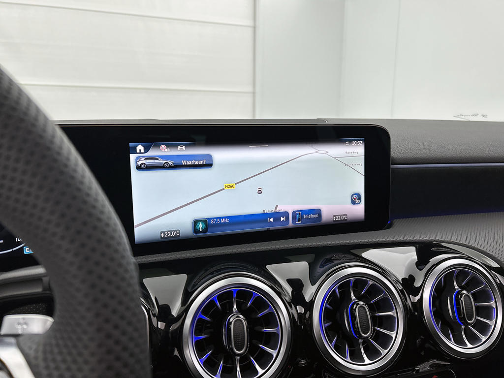Alles vrij achter? De parkeerhulp met achteruitrijcamera laat het meteen zien. Pech oplossen en zelfs voorkomen? Gaat eenvoudig. Via Connected Services heb je alle data in de hand, gewoon op de smartphone! Nooit meer de weg zoeken en ontspannen arriveren bij jouw reisdoel. Met het navigatiesysteem met harde schijf zit jij veilig en ontspannen in de auto. Bij de luxe van deze auto hoort ook electronic climate control. Het geluidssyteem in deze Mercedes-Benz A-klasse is regelbaar met behulp van de audiobediening op het stuur. Ook is de Mercedes-Benz uitgerust met: schakelpaddles aan het stuur, draadloos opladen, DAB ontvangst, regensensor, cruise control met snelheidsbegrenzer en automatisch dimmende binnenspiegel.