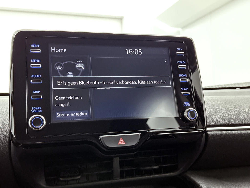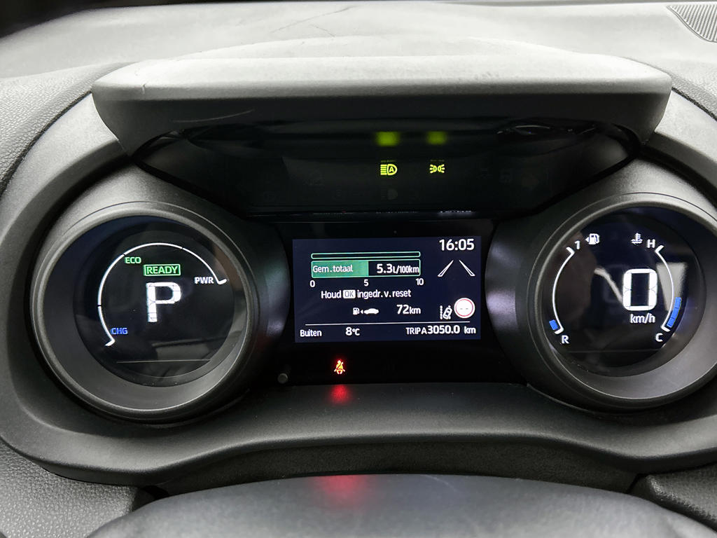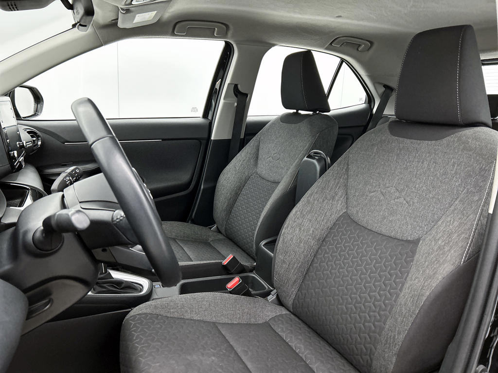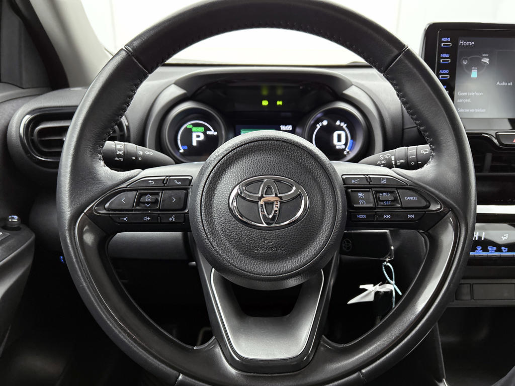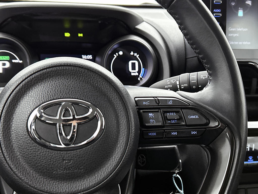 Een onopvallend paaltje of een overstekend kind achter de auto brengt risico's met zich mee. Gelukkig laat de achteruitrijcamera feilloos zien of alles veilig is. Adaptive cruise control houdt de ingestelde snelheid vast en houdt automatisch afstand tot jouw voorligger. Oliepeil, bandenspanning, sloten en andere functies zijn via een speciale app overal te checken dankzij Connected Services. In deze Yaris Cross vind jij schakelaars op het stuur om het audiosysteem met dab-ontvangst te bedienen. De automatische airconditioning zorgt voor een behaaglijk klimaat in de auto. De Toyota is standaard voorzien van: regensensor, buitentemperatuurmeter, lederen stuur, centrale deurvergrendeling met afstandsbediening en lederen versnellingspook.