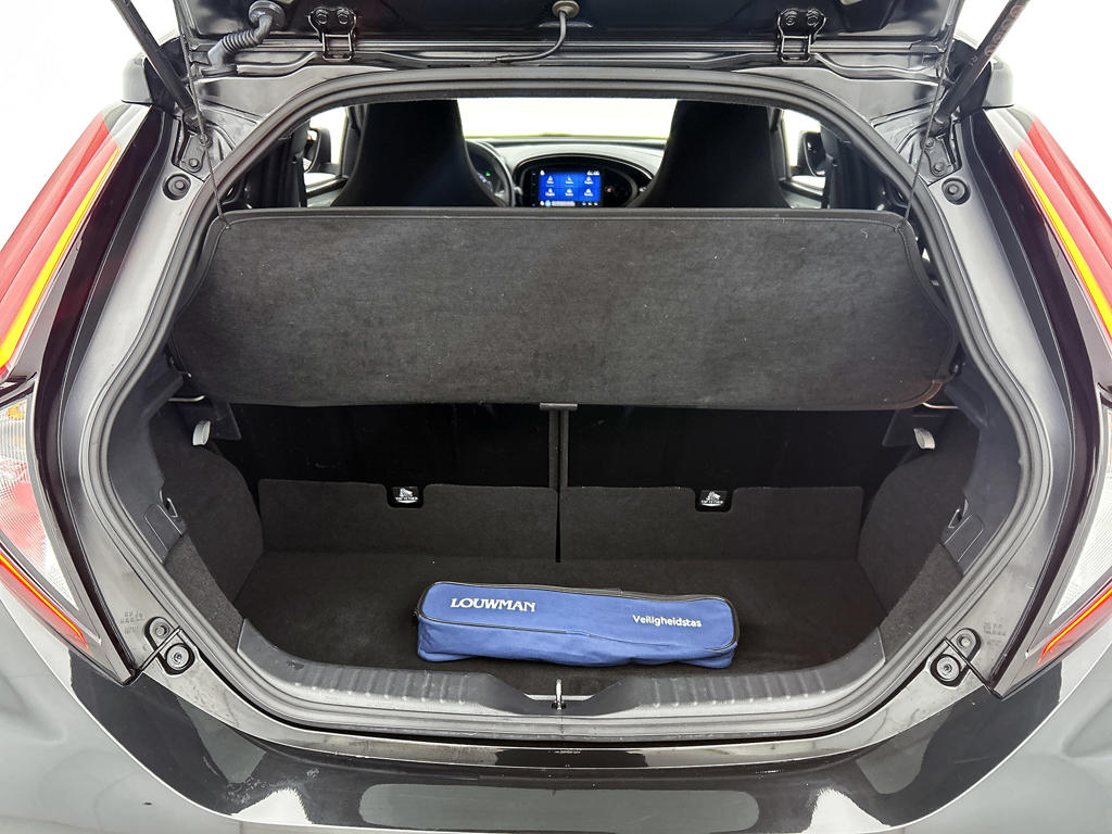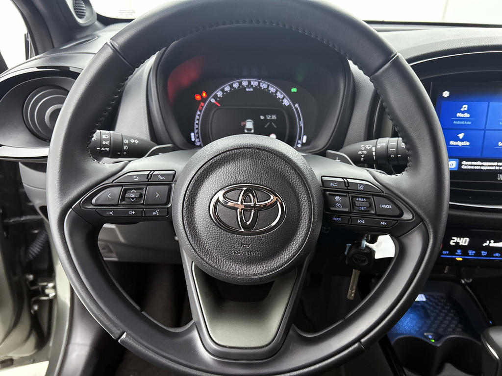 Twijfelen hoeveel ruimte je achter de auto hebt? Met de achteruitrijcamera weet je altijd hoeveel centimeter! Adaptive cruise control houdt de ingestelde snelheid vast en houdt afstand tot het voertuig voor je. Deze Toyota Aygo X is 'connected'. Belangrijke functies worden permanent gemeten en zijn uit te lezen via een speciale app, ook op afstand. Ook het geluid aan boord is top-of-the-line. Het high performance audiosysteem levert superieure prestaties. Door de draadloze oplaadmogelijkheid voor telefoons ben je verlost van kabels en snoertjes. Het opladen gaat simpel door de smartphone in de speciale houder te plaatsen. En dan is deze auto ook nog eens voorzien van achteropkomend verkeer waarschuwing, automatische airconditioning, DAB ontvangst, regensensor, lederen stuur en centrale deurvergrendeling met afstandsbediening.