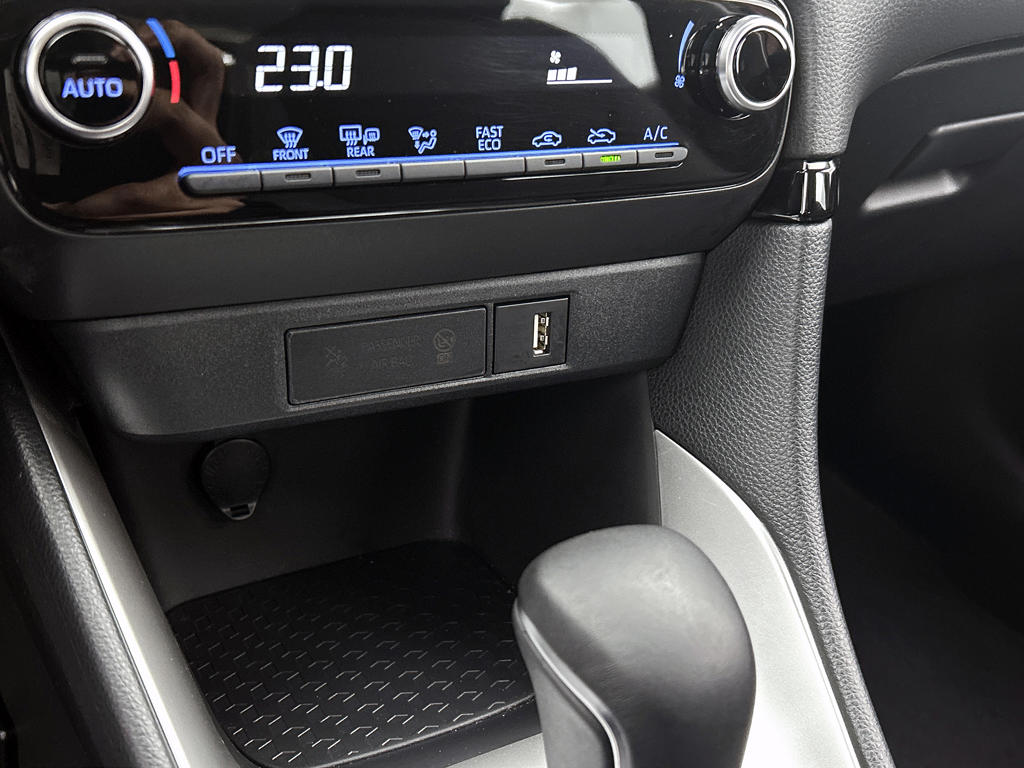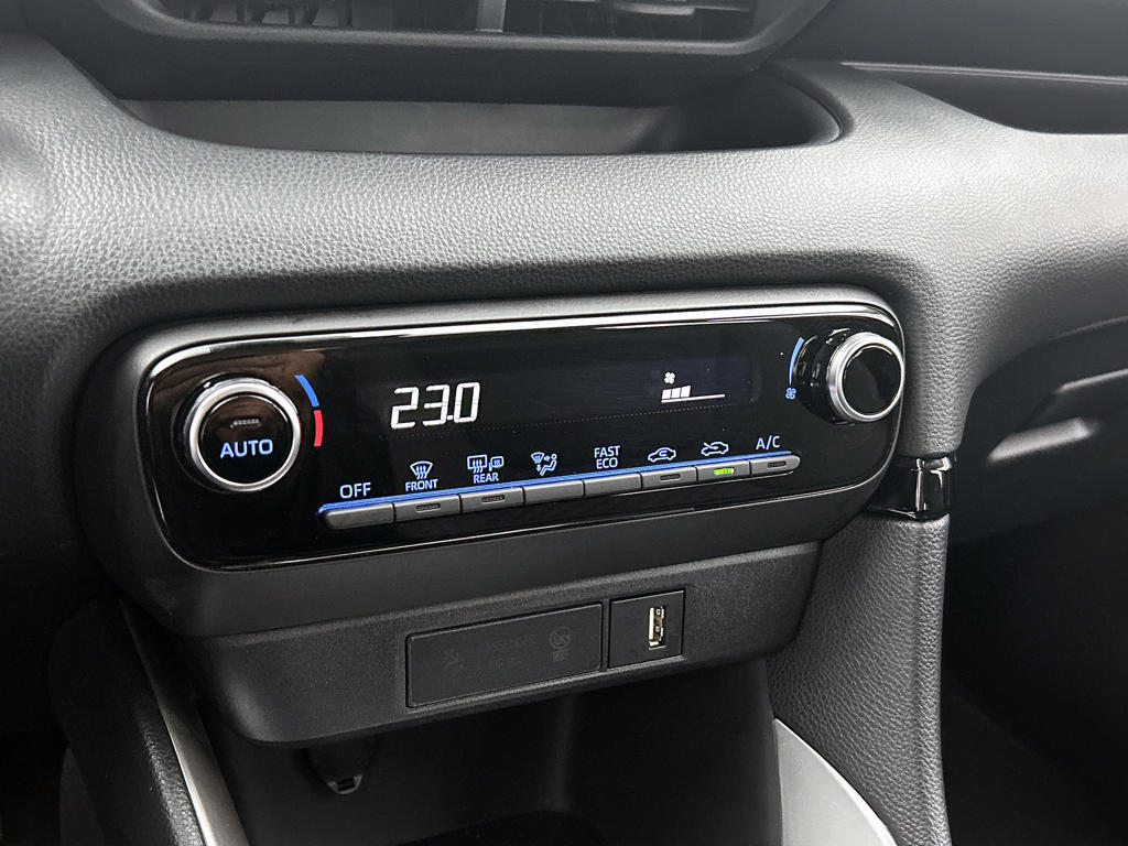 Je rijdt gemakkelijk, comfortabel en zonder zorgen met deze Toyota Yaris. Het is een auto van het bouwjaar 2021. De auto heeft een opmerkelijk lage kilometerstand van slechts 15597 Met zijn benzinemotor en automatische transmissie is dit een prima auto voor nog vele kilometers. Bij de rijke uitrusting horen ook 16 inch lichtmetalen velgen, LED koplampen, dakspoiler, in hoogte verstelbare passagiersstoel, in delen neerklapbare achterbank en LED-achterlichten.