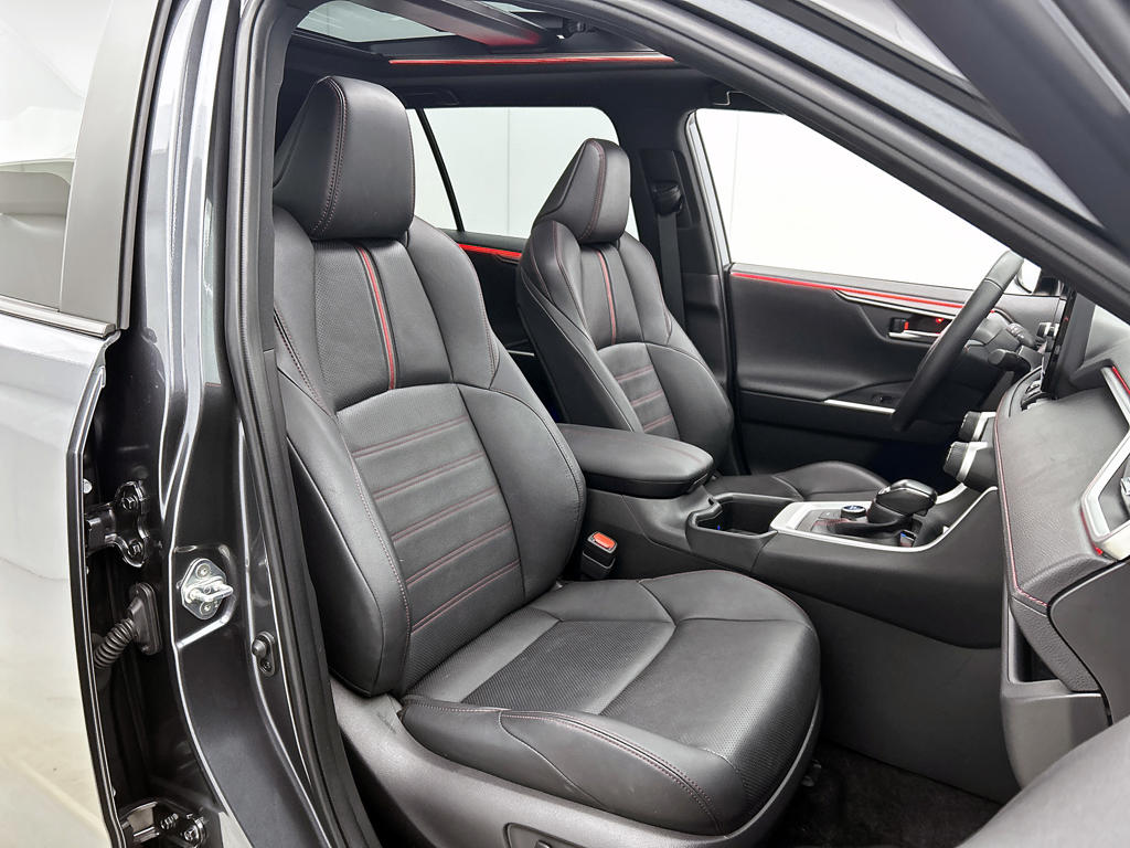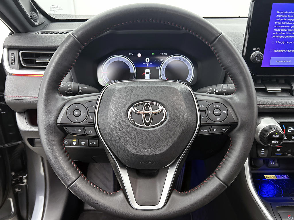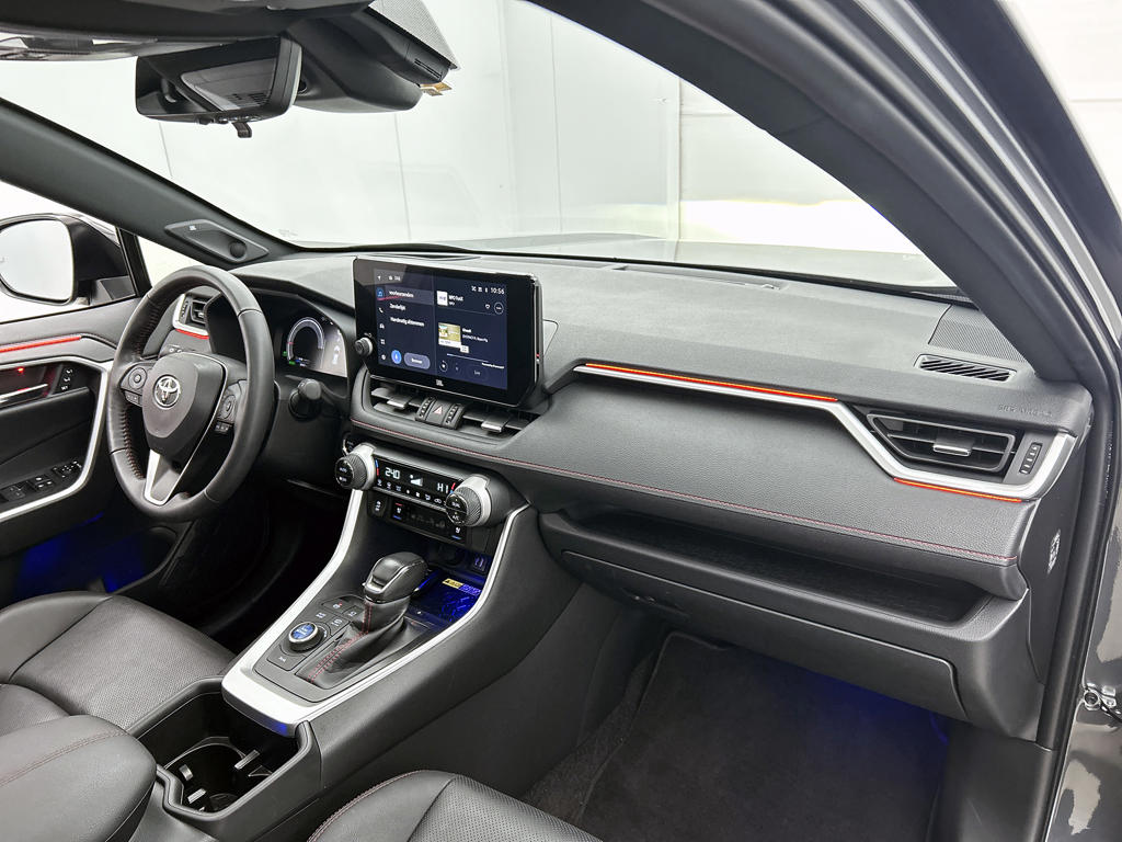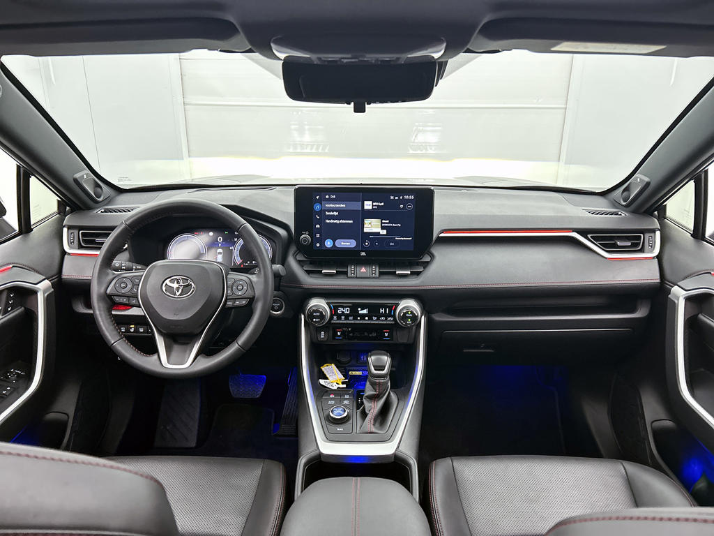 Hij zorgt voor een ontspannen rijervaring, deze Toyota RAV4. Het is een auto uit 2024. Kiezen tussen benzine óf elektrisch hoeft bij deze Toyota RAV4 niet. De hybride motor schakelt gemakkelijk over als jij dat wilt. Stel je voor: zoevend over de snelweg terwijl het gulle daglicht het lederen interieur binnenvalt door het elektrisch bediende glazen panorama dak. En wat gemak betreft: daar zorgt onder andere de elektrisch bedienbare achterklep voor. Tijdens koude winterdagen verjaagt jouw stoelverwarming de kou en maakt het rijden heerlijk comfortabel. Met de verwarmbare achterbank zitten jouw achterpassagiers er net zo behaaglijk bij als jij. De uitmonstering van deze auto wordt gecompleteerd door onder meer 19 inch lichtmetalen velgen, Full LED koplampen, geluidsisolerende ramen, trailer assistent, in delen neerklapbare achterbank en LED-achterlichten.