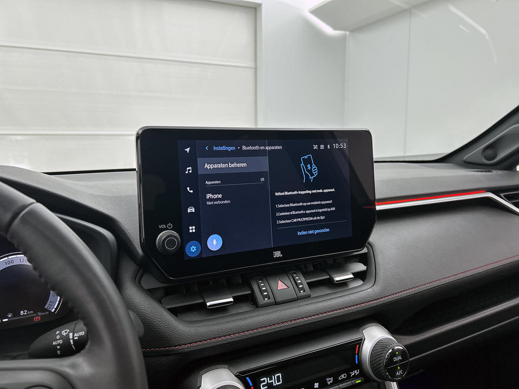 De functie van de 360 graden camera in deze auto is om jou een totaaloverzicht van de omgeving te geven, ongeacht hoe smal de straat of parkeerplek is. Als je de adaptive cruise control inschakelt, regelt de auto zelf de snelheid en de afstand tot de auto voor je. Dankzij Connected Services houd je de auto nog gemakkelijker in topconditie. Elke dag. Elk genre muziek komt tot z'n recht. Het high performance audiosysteem is perfect in te regelen op jouw smaak! Nieuwe smartphones hebben geen snoeren meer nodig om op te laden. Daarom heeft deze Toyota RAV4 een draadloze oplaadmogelijkheid voor telefoons waarmee je onderweg simpel en effectief voor een volle accu zorgt. En deze auto heeft ook dashboard met spraakbediening, full map navigatiesysteem, achteropkomend verkeer waarschuwing, electronic climate control, schakelpaddles aan het stuur en DAB ontvangst als standaard uitrusting.