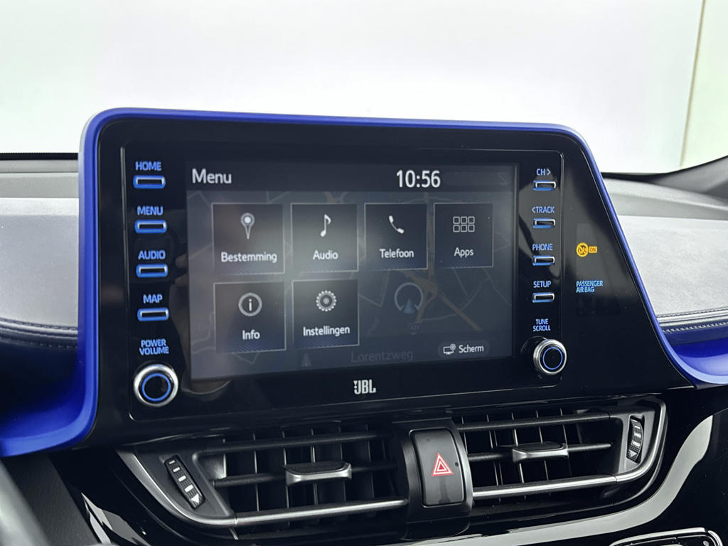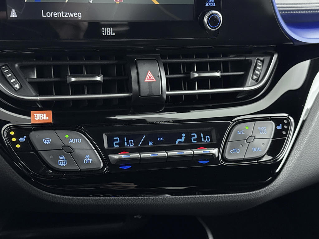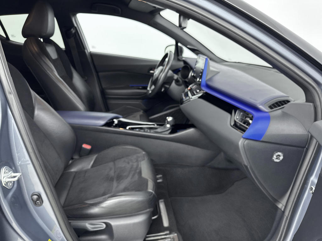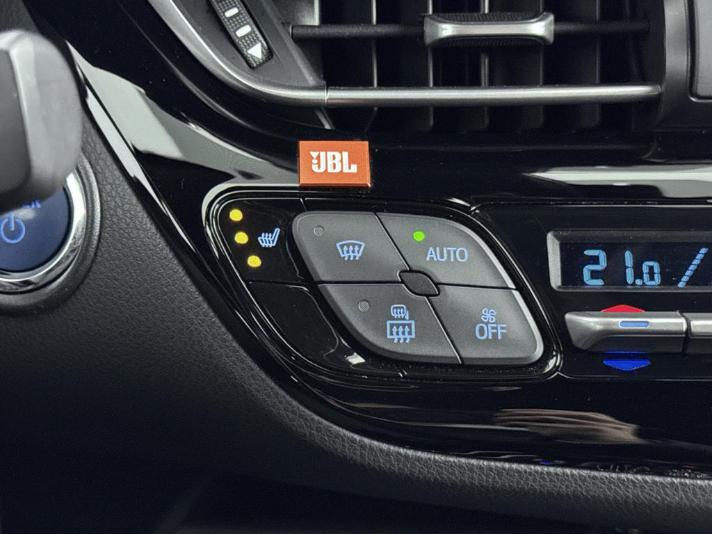 Zoals je mag verwachten van deze Toyota C-HR is hij uitgerust met een reeks aan actieve veiligheidssystemen. Een belangrijke bijdrage aan de veiligheid onderweg levert de verkeersbord-detectie in deze Toyota. Het forward collision warning-systeem is constant alert en detecteert via sensor de afstand tot voorliggers. Wordt die te klein, dan volgt een automatische waarschuwing. Verder is deze auto uitgerust met dodehoekdetectie, hill hold functie, brake assist en bandenspanningcontrolesysteem.
