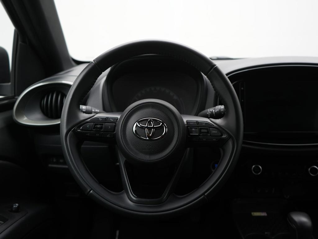 Zelfs een kleine aanrijding kan flinke kosten veroorzaken. Gelukkig laat de achteruitrijcamera precies zien wat er zich achter de auto bevindt en geeft een waarschuwingssignaal. Adaptive cruise control houdt de ingestelde snelheid vast en houdt afstand tot het voertuig voor je. Je smartphone is tegenwoordig de sleutel tot heel veel. Ook voor deze auto. Remote services, noemen we dat. Waar je ook bent, contact houden is een eitje. Aan boord van deze Toyota Aygo X is een achteropkomend verkeer waarschuwing voor extra veiligheid. Automatische airconditioning verwarmt of koelt het interieur met een druk op de knop. Deze auto is voorzien van DAB ontvangst, regensensor, lederen stuur en centrale deurvergrendeling met afstandsbediening.