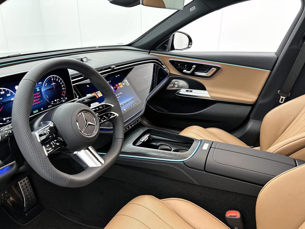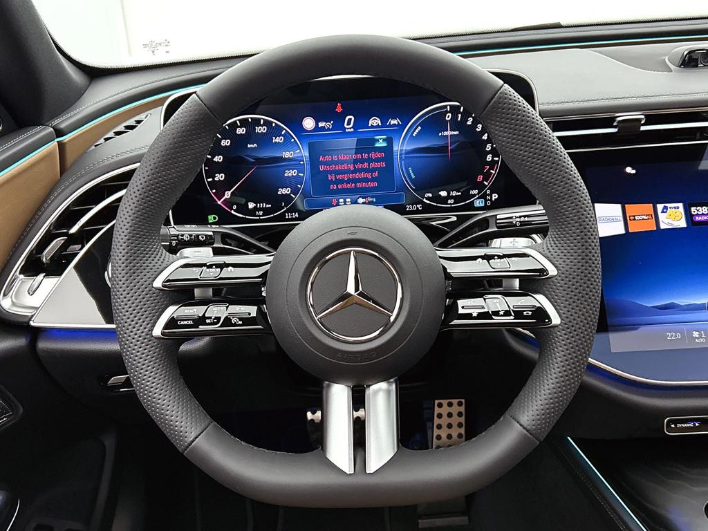 Een auto als de Mercedes-Benz E-klasse Estate biedt een dynamiek en comfort die typerend zijn voor de producten van de Duitse autofabrikanten. Een beetje meer aandacht en een stoere uitstraling? Daar zorgt de AMG Line Exterieur voor. Dit is een splinternieuwe auto, die nu uit voorraad leverbaar is. De hybride combi van een verbrandingsmotor en een elektromotor zorgt voor zeer laag brandstofverbruik en veel minder uitstoot. Je past de stoelen moeiteloos aan, ze zijn elektrisch in te stellen en hebben bovendien een geheugen. Licht, luxe en gemak komen samen in de vorm van het elektrische bediende glazen panoramadak. Een praktische extra is de elektrisch bedienbare achterklep die opent en sluit met een druk op de knop. Een heerlijk luxe optie van deze auto is het verwarmbare stuurwiel. De geavanceerde matrix LED-verlichting in de koplampen levert maximaal helder zicht en past zich subtiel aan zodra er een tegenligger komt. Zonder lichtkwaliteitsverlies! Ook AMG Line Exterieur, adaptief dempingsysteem, warmtewerend glas, in delen neerklapbare achterbank, LED-achterlichten en verstelbare lendensteunen zijn aan boord.