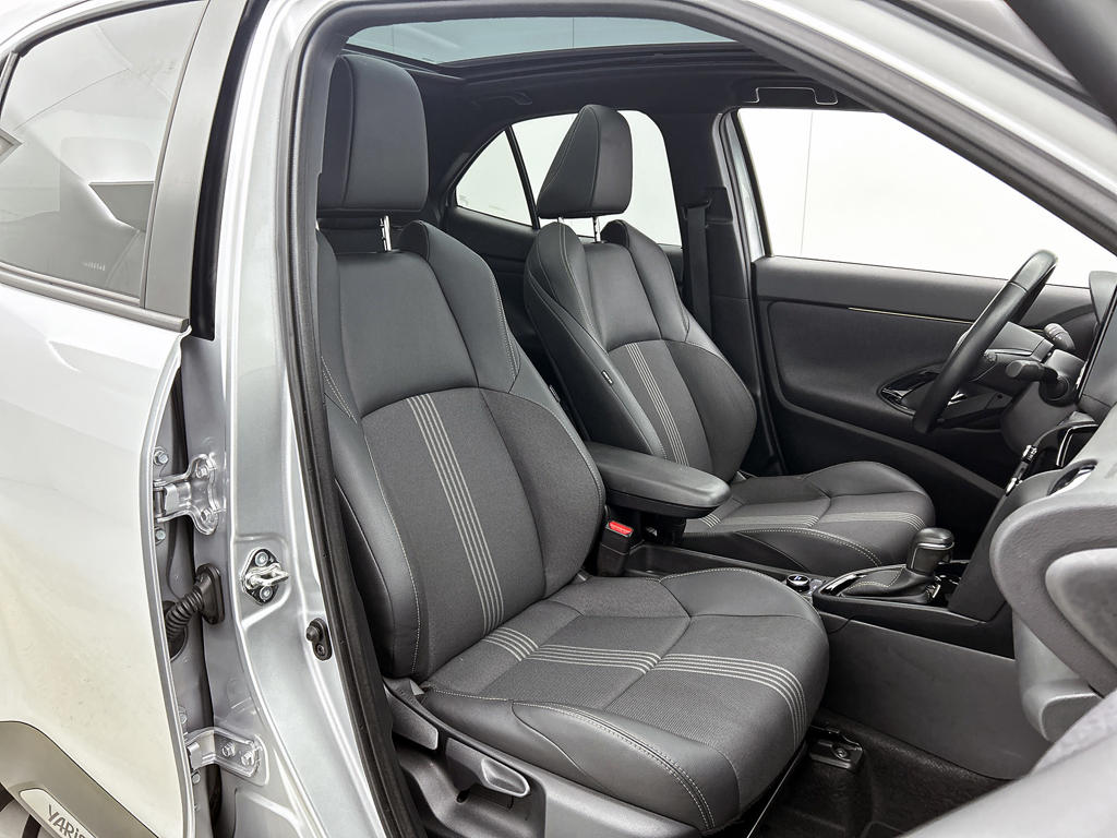 Modern design en bijzondere techniek bepalen de kwaliteiten van de hybride Toyota Yaris Cross. Deze auto is uit 2024, hij heeft 29774 kilometer gelopen. Dankzij zijn verbrandingsmotor en de elektromotor is het brandstofverbruik van deze auto laag in zijn klasse. Deze Toyota Yaris Cross legt bestuurder én bijrijder compleet in de watten met de verwarmbare voorstoelen. Met het grote glazen panoramadak voelt het alsof u in een cabrio zit. Bij de uitrusting van deze auto horen onder meer 17 inch lichtmetalen velgen, LED koplampen, trailer assistent, dakspoiler, donker getint glas achter en in delen neerklapbare achterbank.