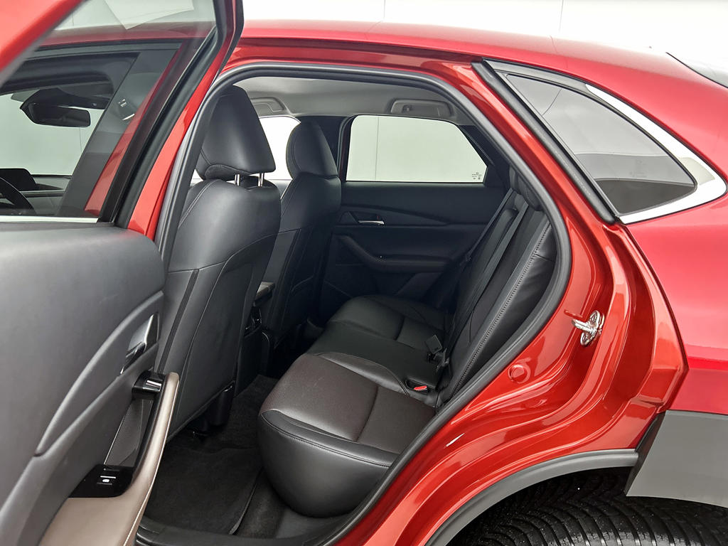 Alle technologie in de Mazda CX-30 is er op gericht om jouw rit veilig en gemakkelijk te laten verlopen. Dit mooie exemplaar komt uit 2021. Op de teller van deze auto staat slechts 17599 kilometer. Een hybride auto zoals deze, wordt aangedreven door een verbrandingsmotor en een elektromotor. Daardoor is de auto zuinig en vriendelijk voor het milieu. Ook een fijne dosis klasse is bijgeleverd, met het lederen interieur. Op koude en donkere dagen zijn de verwarmbare voorstoelen een uitkomst. De elektrisch bedienbare achterklep opent met een druk op de knop. Je wordt in deze auto ook getrakteerd op 18 inch lichtmetalen velgen, LED koplampen, dakspoiler, donker getint glas achter, in delen neerklapbare achterbank en LED-achterlichten.