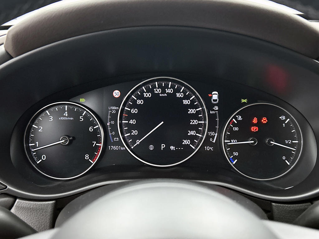 De nieuwste veiligheidssystemen komen in deze Mazda CX-30 samen. Een belangrijke bijdrage aan de veiligheid onderweg levert de verkeersbord-detectie in deze Mazda. Het Lane-keeping systeem zorgt dat je mooi binnen de lijntjes blijft. Ongemerkt buiten de rijstrook komen is er niet meer bij. Het forward collision warning-systeem is constant alert en detecteert via sensor de afstand tot voorliggers. Wordt die te klein, dan volgt een automatische waarschuwing. De auto is ook uitgerust met head-up display, dodehoekdetectie, hill hold functie, brake assist, vermoeidheidsherkenning en bandenspanningcontrolesysteem.