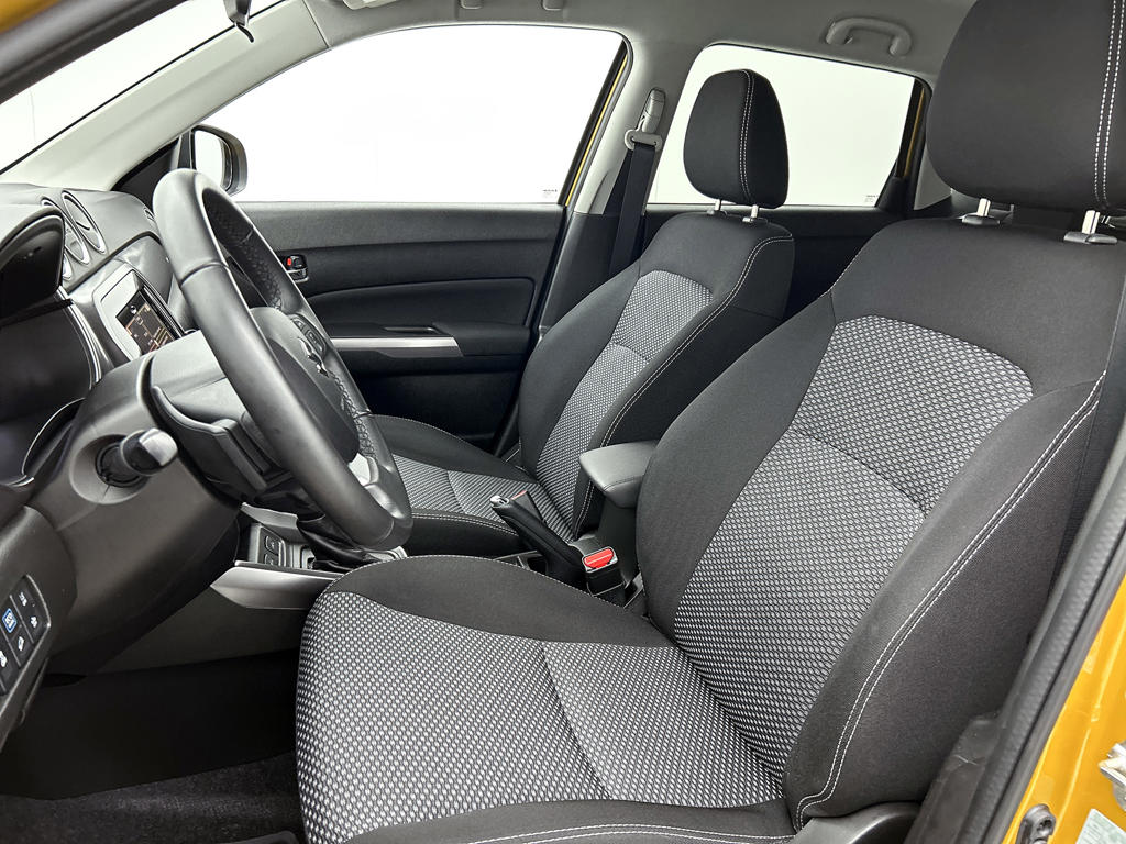 Techniek en design helemaal van nu. Kilometerstand van gisteren. Deze bijna-nieuwe Suzuki Vitara heeft z'n nestveren afgeschud en is klaar om te vliegen. Elektrisch? Benzine? Bij deze Suzuki Vitara kan het allebei. De hybride motor biedt de ideale keuzecombinatie. Deze Suzuki Vitara legt bestuurder én bijrijder compleet in de watten met de verwarmbare voorstoelen. Bij de uitrusting van deze Suzuki horen onder meer 17 inch lichtmetalen velgen, LED koplampen, donker getint glas achter, in delen neerklapbare achterbank, LED-achterlichten en snelheidsafhankelijke stuurbekrachtiging.